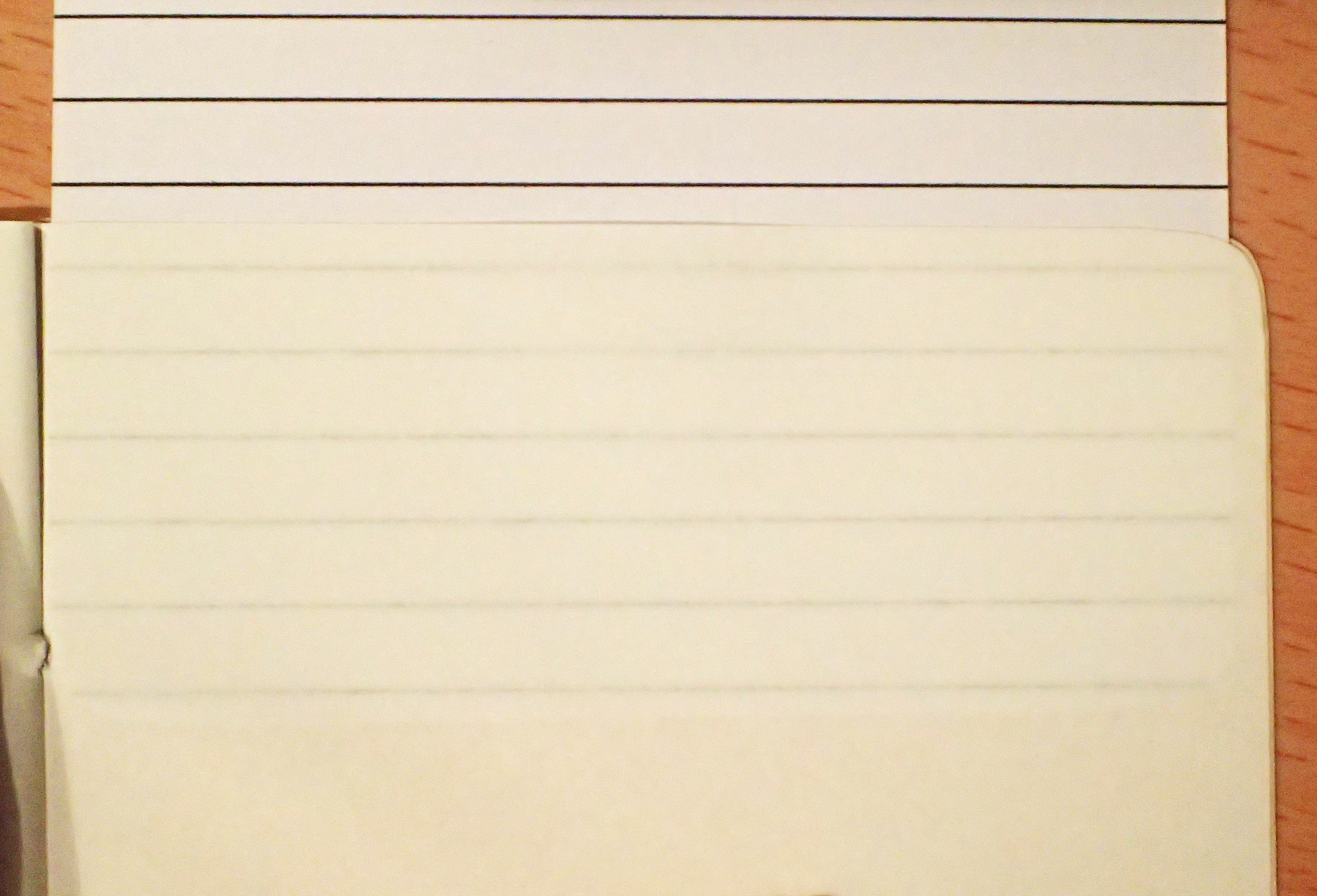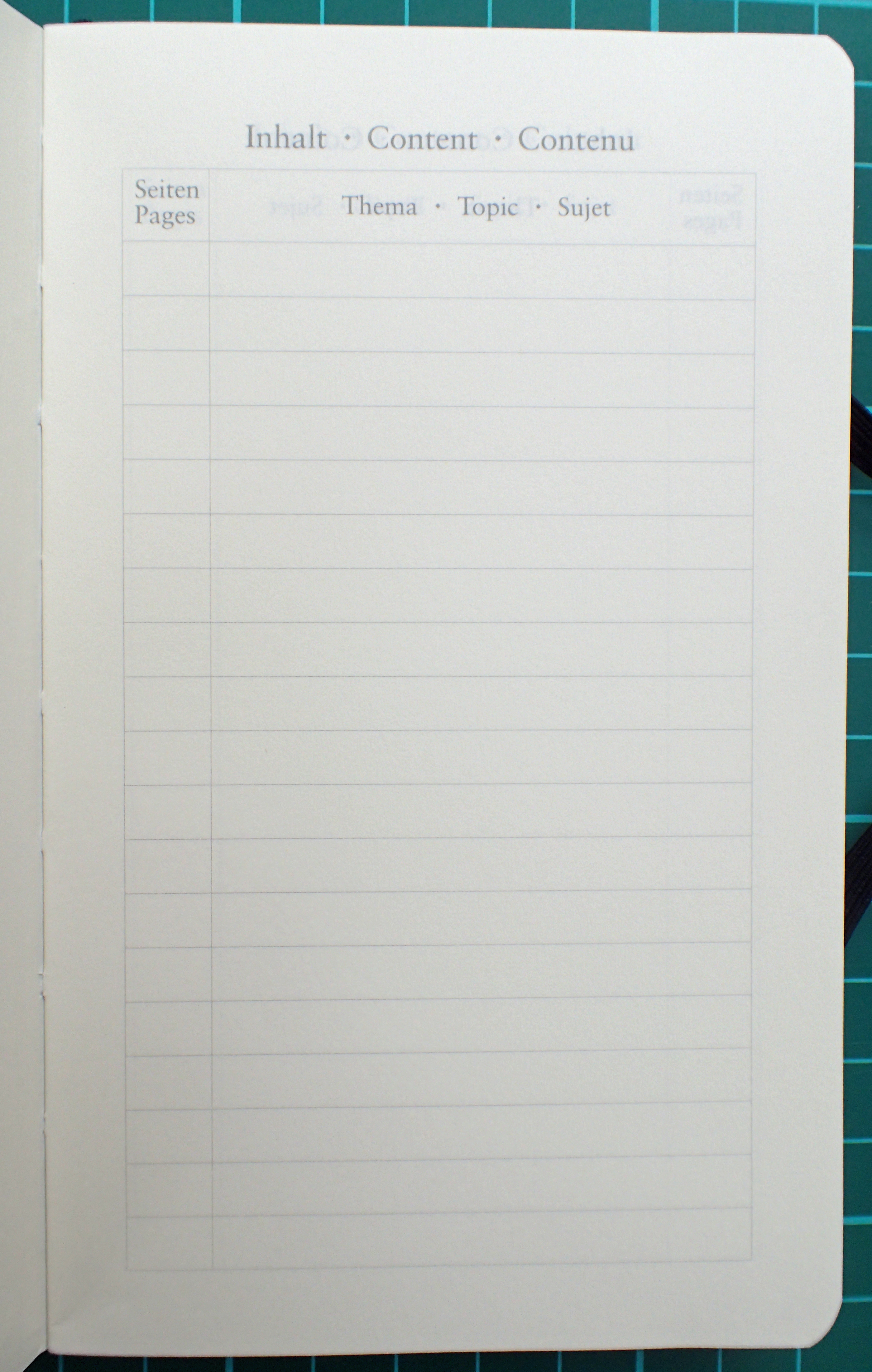 Paper is an ivory coloured 70 g/m² acid-free. The  rear sixteen pages (32 sides) are perforated and can be detached. There are no page numbers. Each journal weighs 39g, though I have found some variation in this having come across examples that weigh 41g. Word has it that outsourcing supply in recent years has resulted in some quality control issues. I cannot say that I have encountered any problem with recent purchases, but that may be that because it is such a simple product that exceptionally high quality is not going to be found anyway- as I say, they have kept it simple and that is what it is.