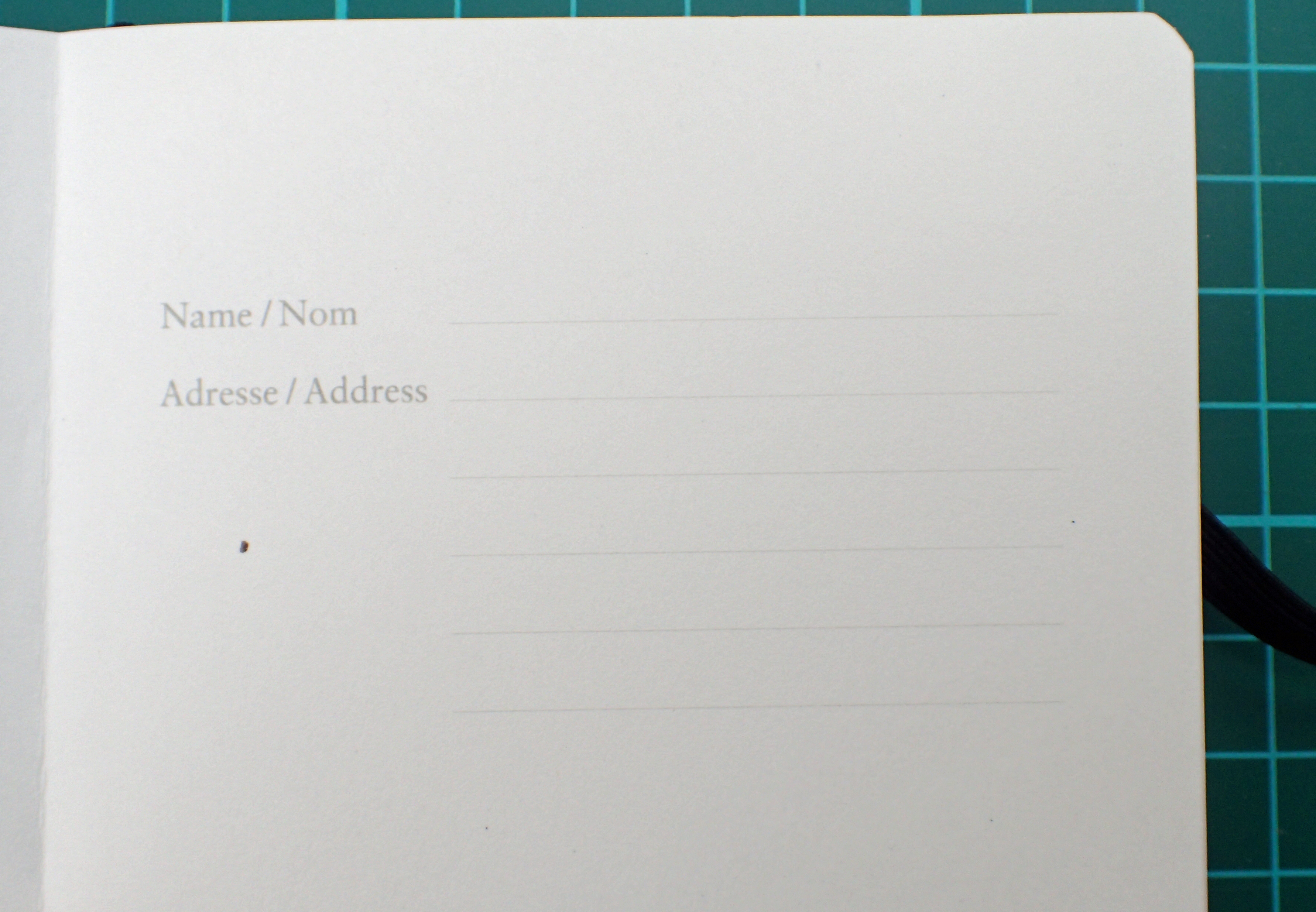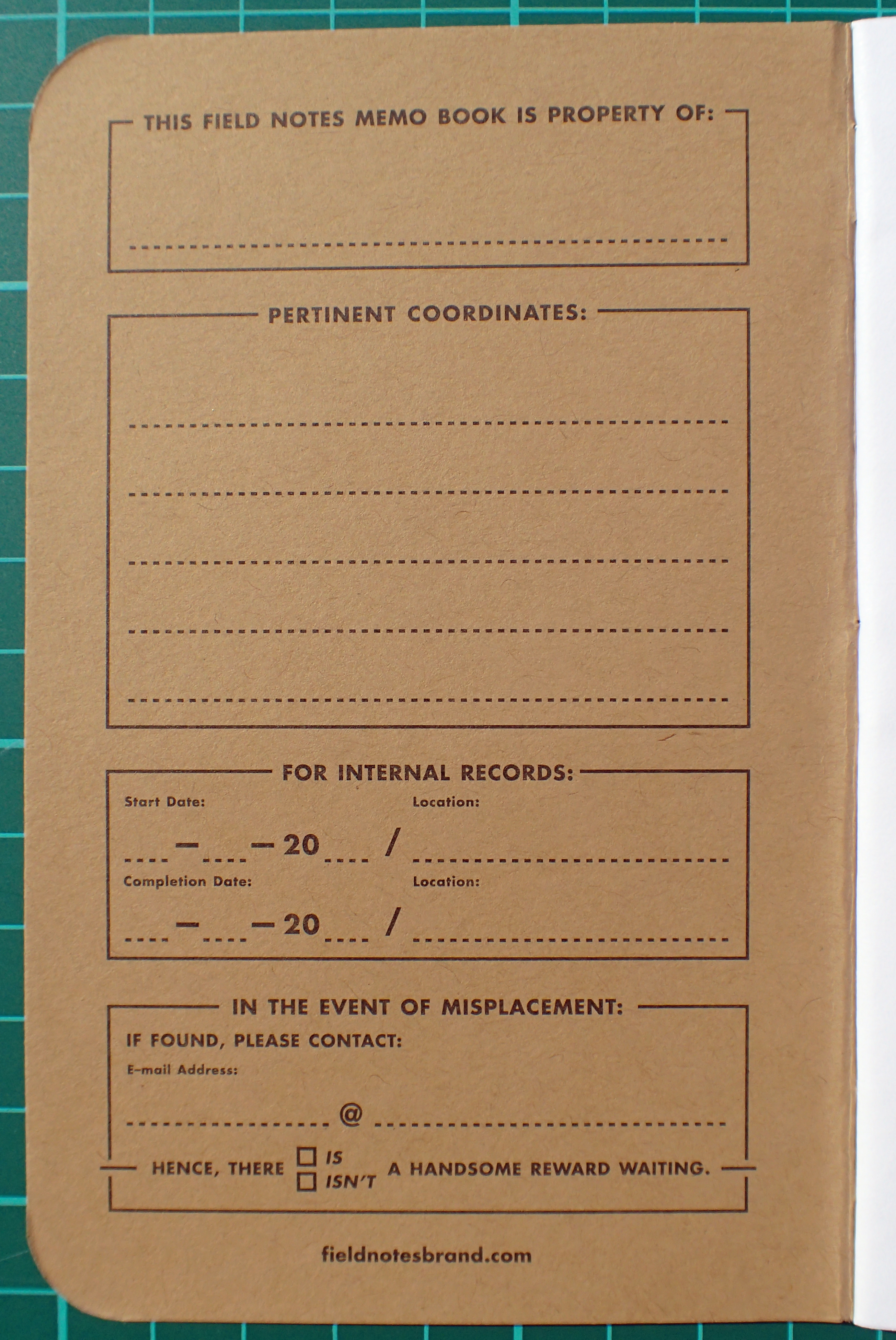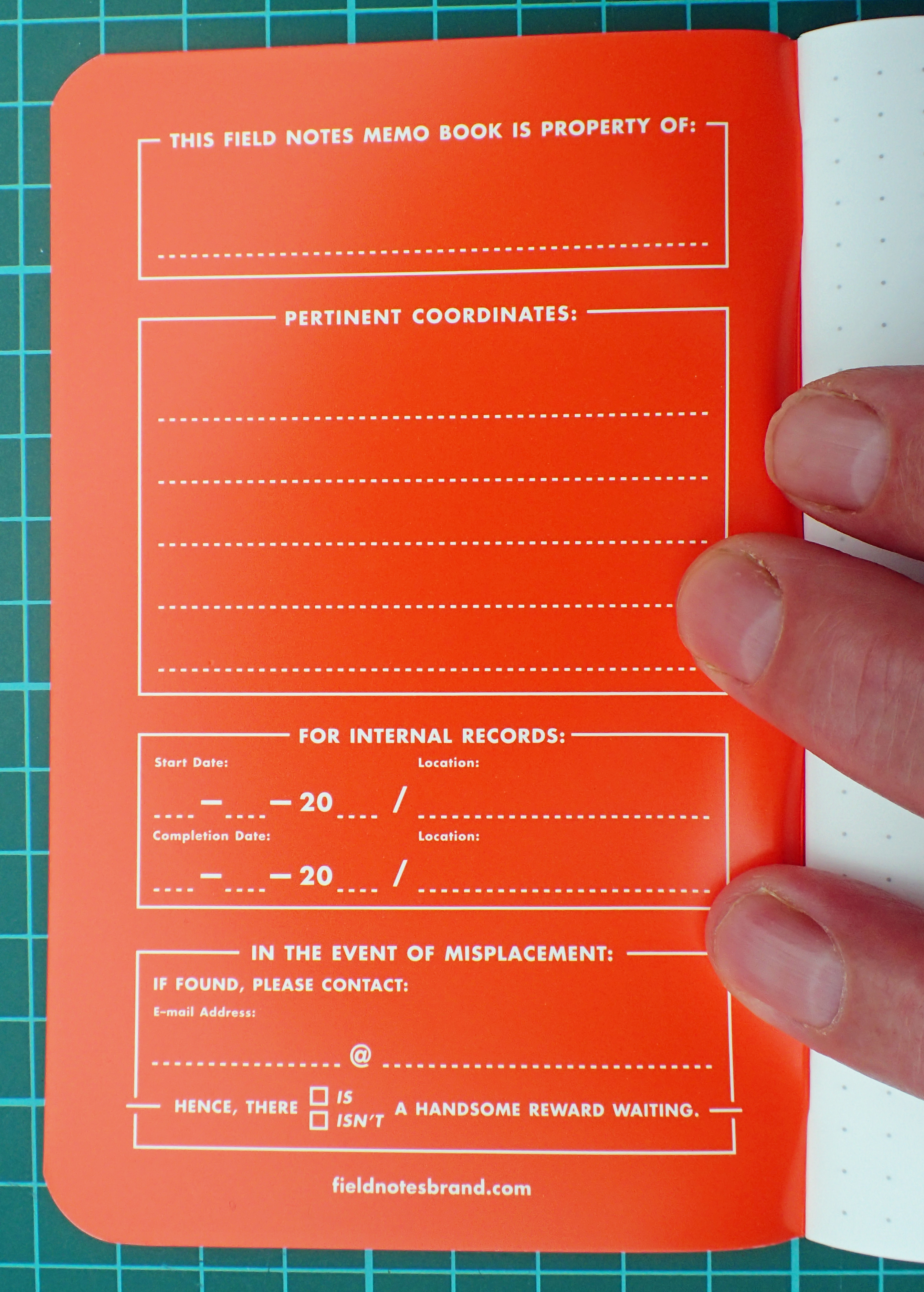Field Notes Memo Book, inside front cover. There is space here for personal information to be entered