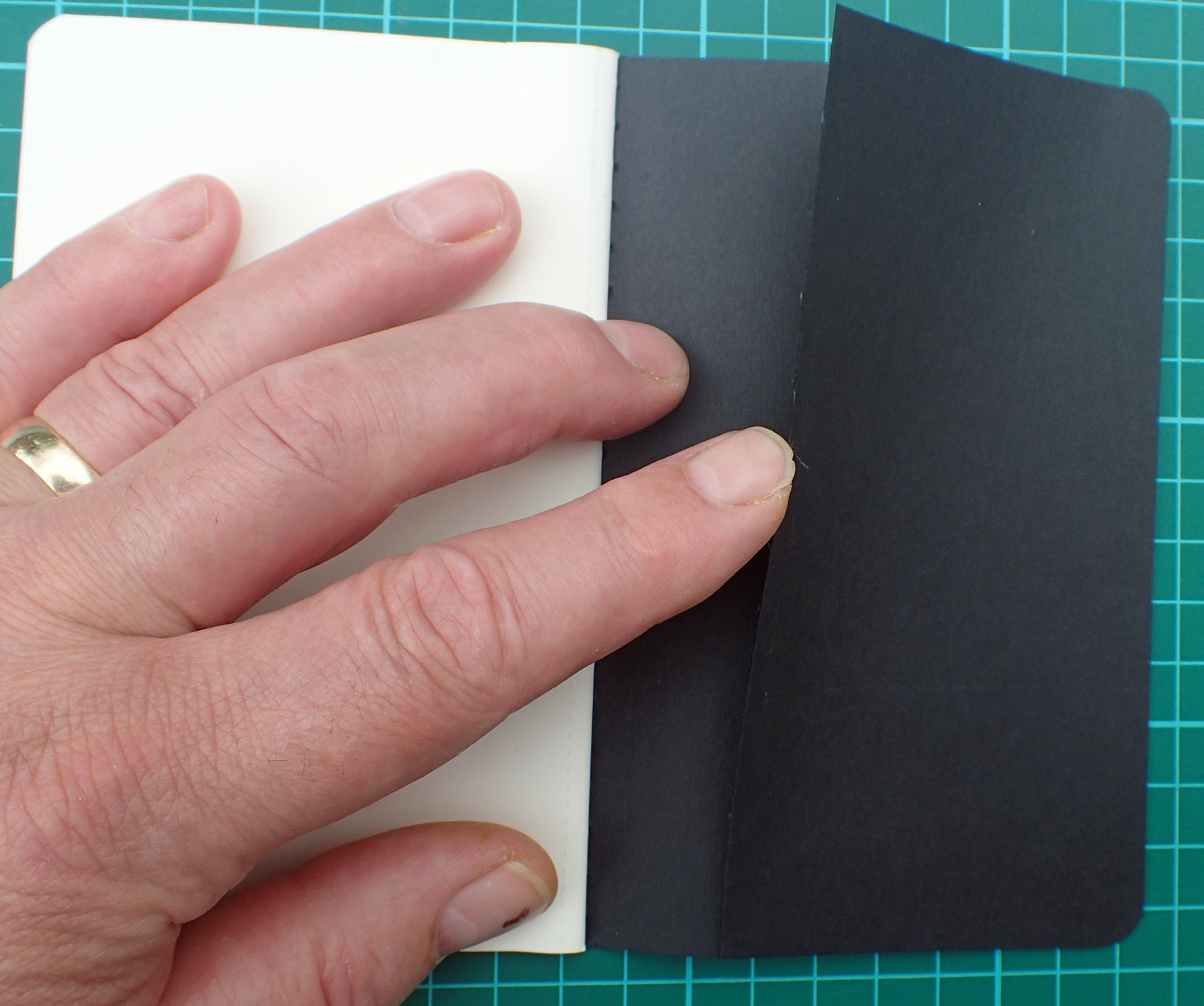 Useful flap in rear of notebook. There are stickers to apply to the front cover and/or spine