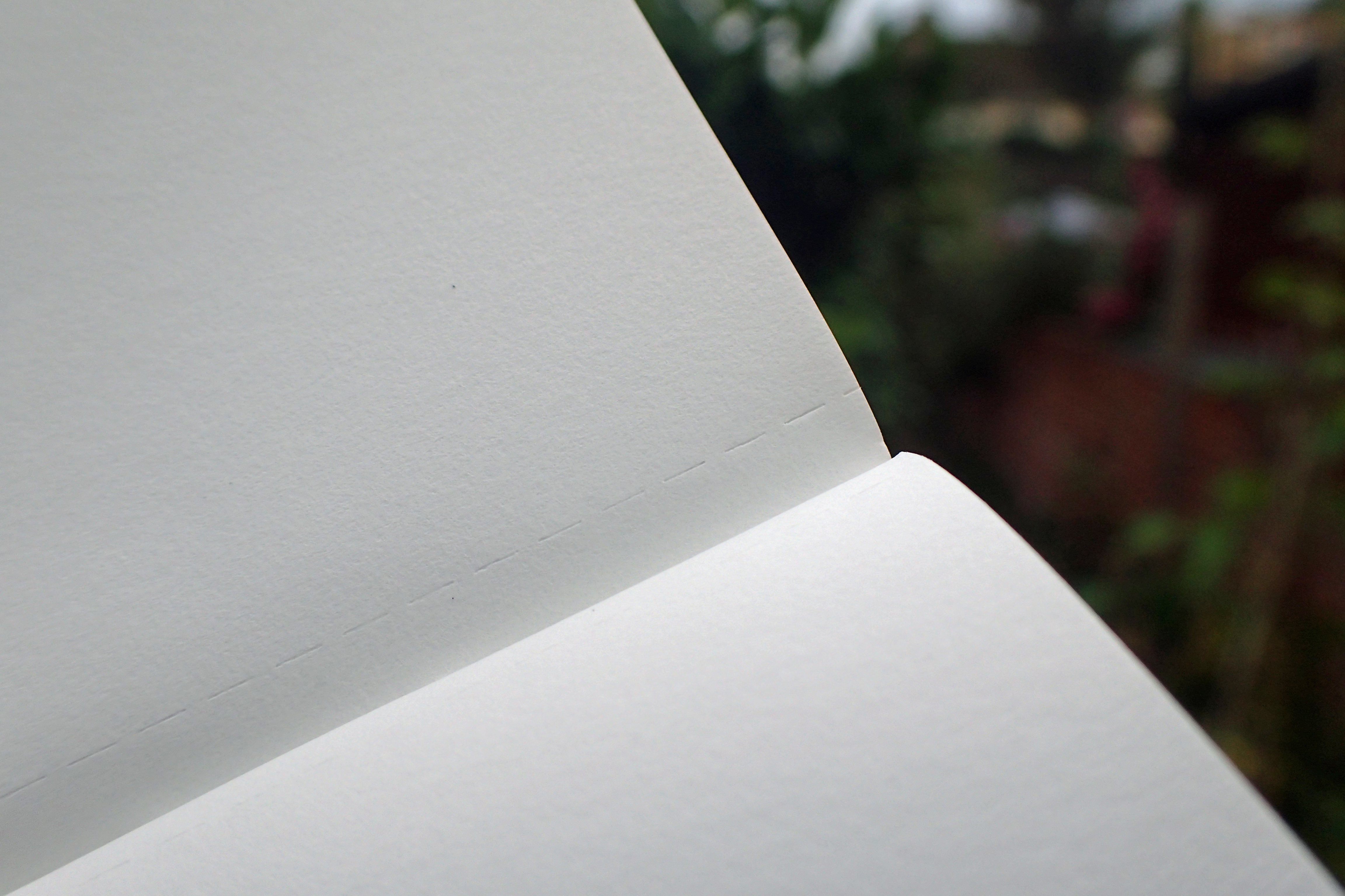 The only slightly above average quality of the paper is apparent with uneven drying of paints and inks. However the paper does not drag on a pen excessively and feels fairly smooth to write or draw on.
