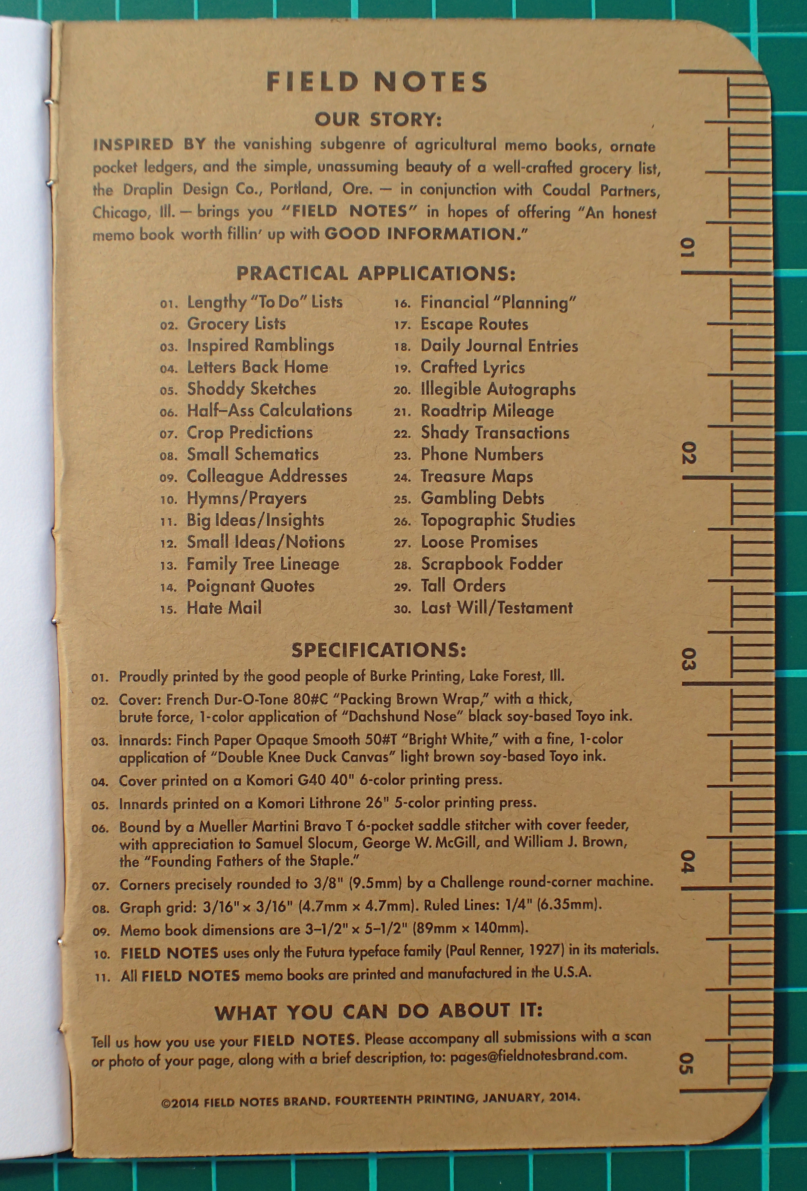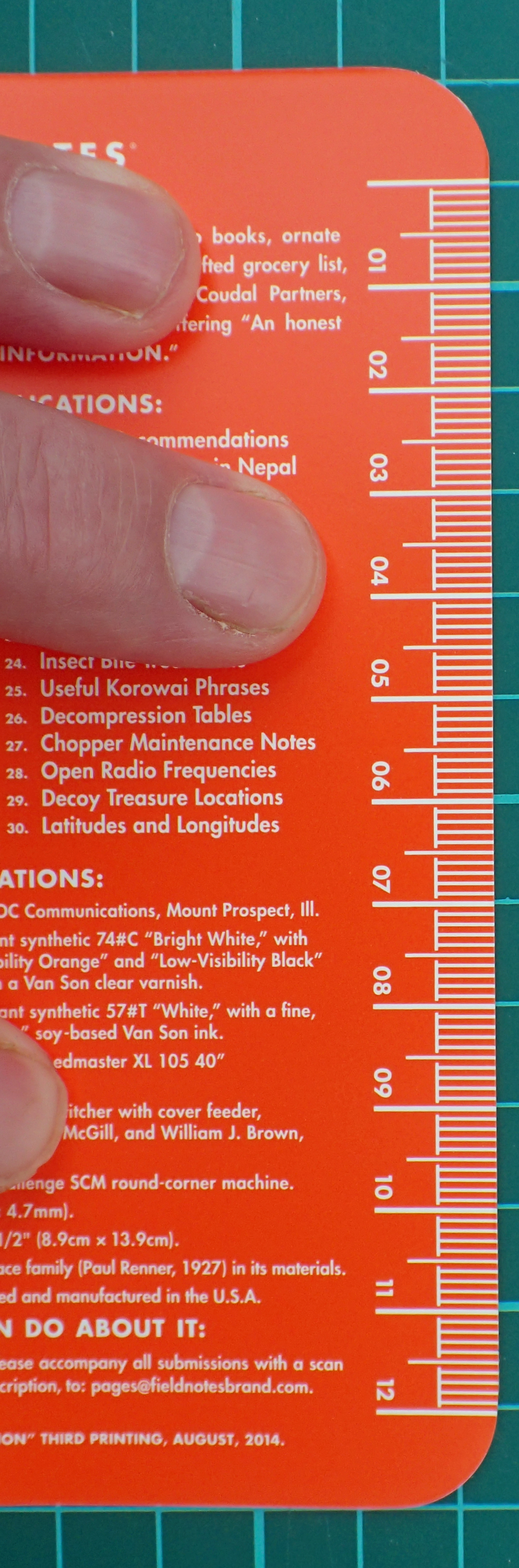 inside rear cover of field-notes. Fairly useful 120mm rule and, well, that’s about it as regards practical inclusion