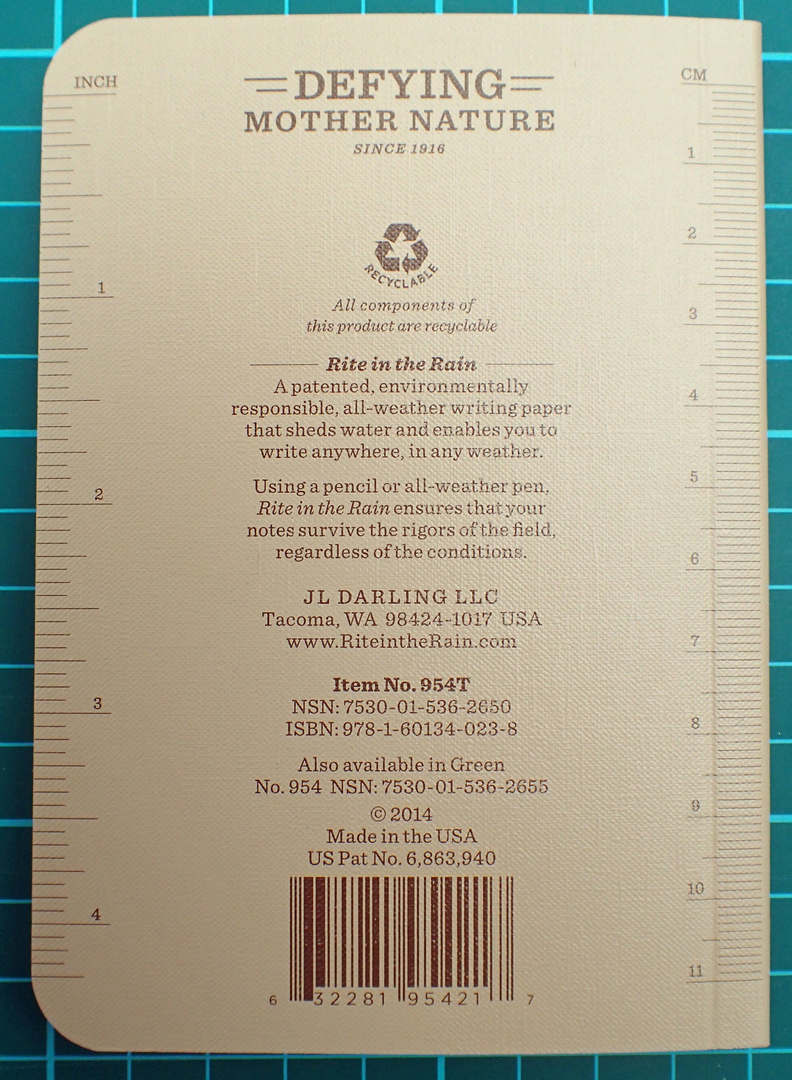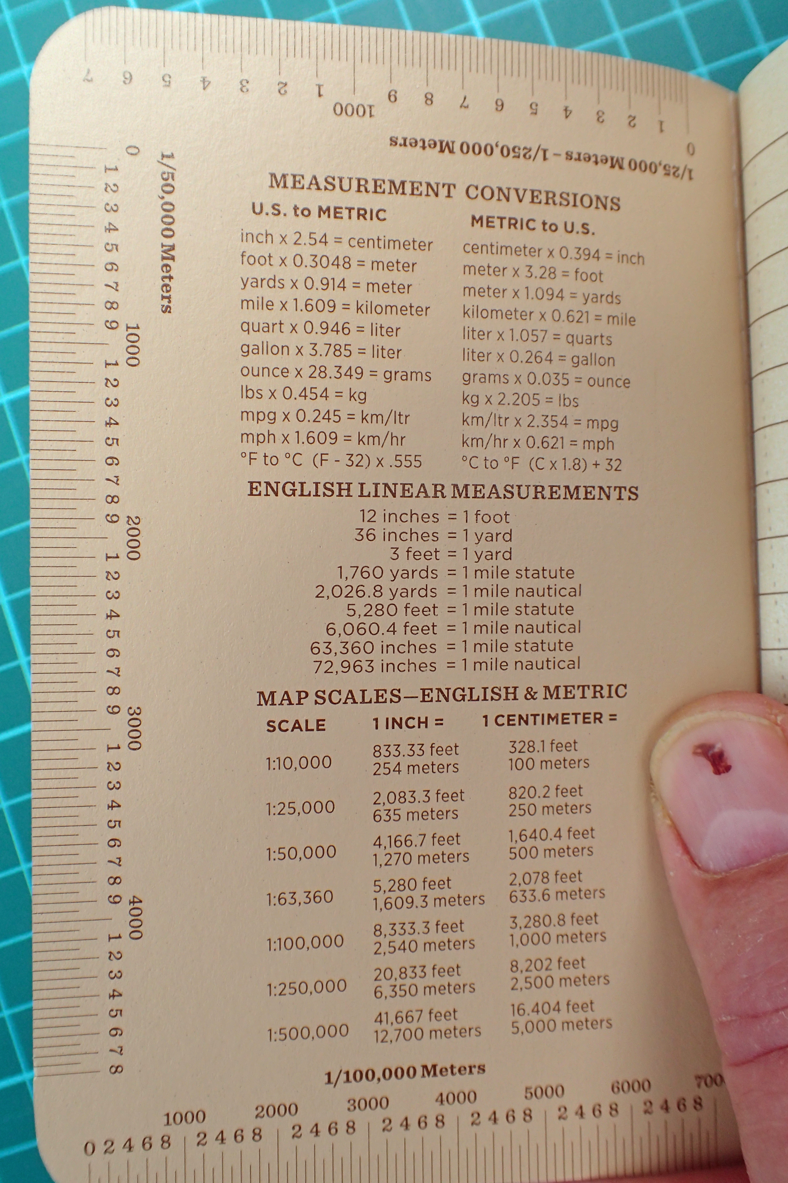 Rite in the Rain- back cover. Useful metric and imperial scale if measuring flora or tracks, not sure how useful otherwise…