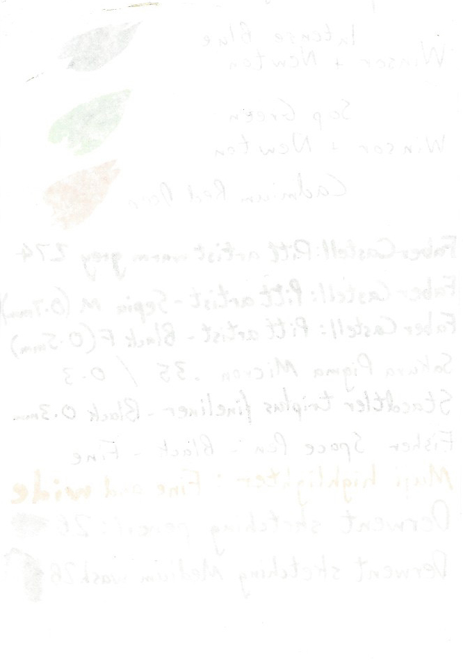 Uneven drying of all inks and pigment is apparent, however the pencils write smoothly and the paper makes a perfectly adequate drawing medium