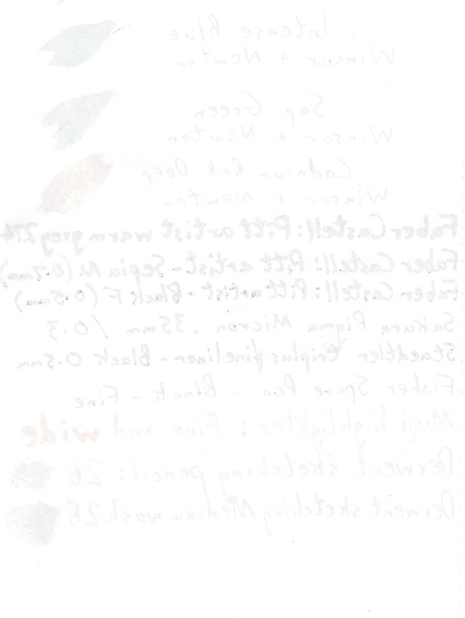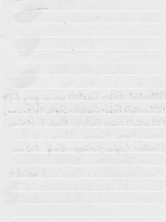 What a lovely paper! It is very pleasant to write on and takes a 2B sketching pencil well. Paint and ink dry quickly and, despite the thinness of the paper, without cockling. This is probably my favourite of all the papers looked at for writing on, though the thinness could prove problematic if being stressed too much, such as if being used for rubbings or sticking heavier mementoes to.