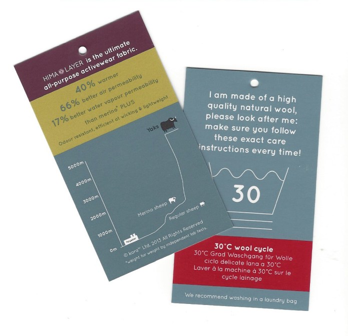 However, I do like to stick to natural products where I can, my theory being that something that has evolved over thousands of years has proven itself suited to specific needs and environments, and any synthetic product development is always going to be playing catch-up. Which brings me back to Kora and their use of yak’s wool. The theory of a natural wool adapting over multiple generations of beast in harsh climes sounds good to me.