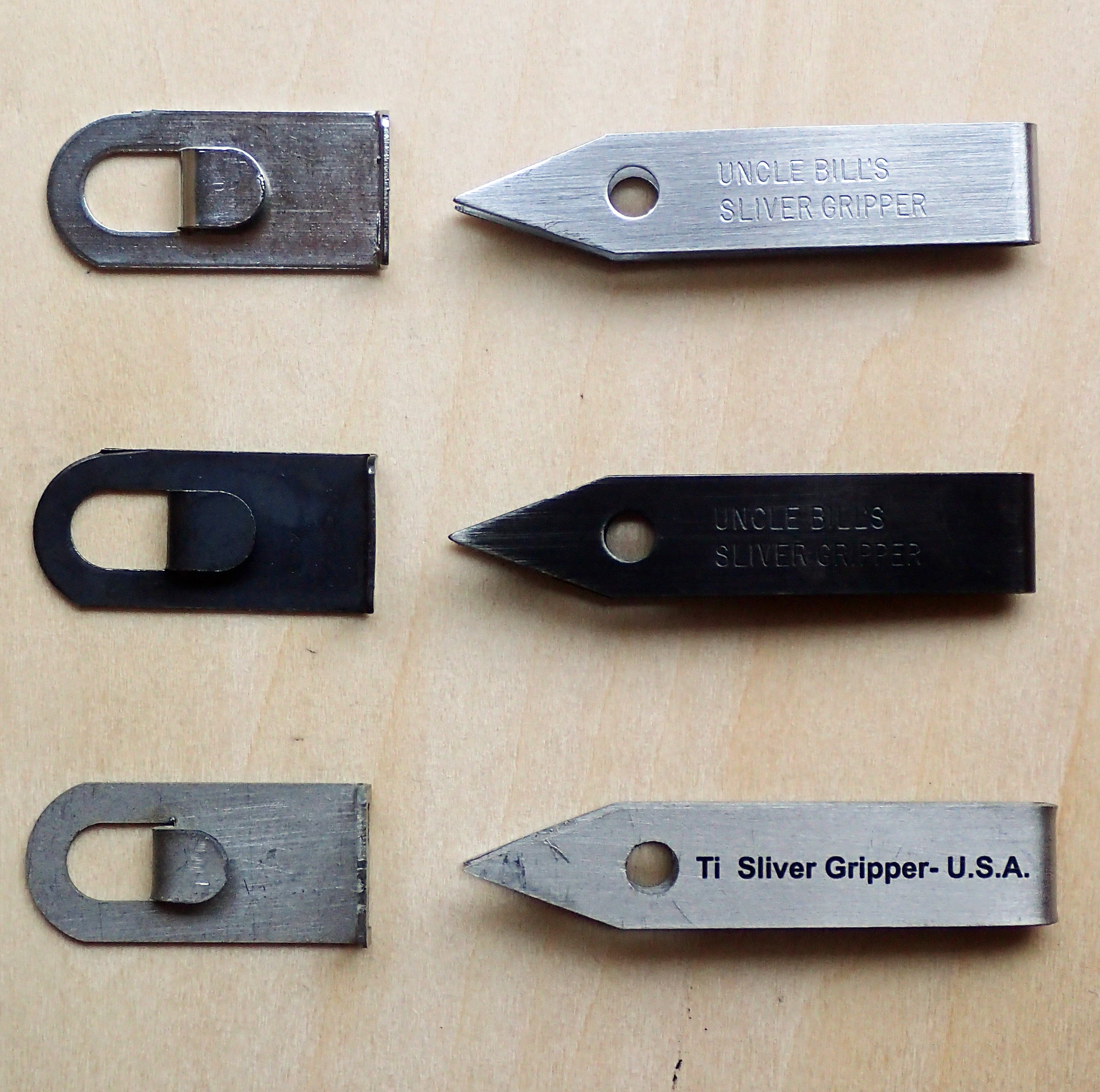 Uncle Bill’s Sliver Gripper tweezers are easily found on-line and come with a lifetime guarantee. I purchased my three from two different suppliers, and costs are reasonable, even when purchased in the UK. They can also be bought in dual packages, or in small plastic tubes. Though I see no need to prefer those last over loose ones unless a pair was going to be kept in a tool box and there was a wish to keep them clean and separate from all the crud around them.