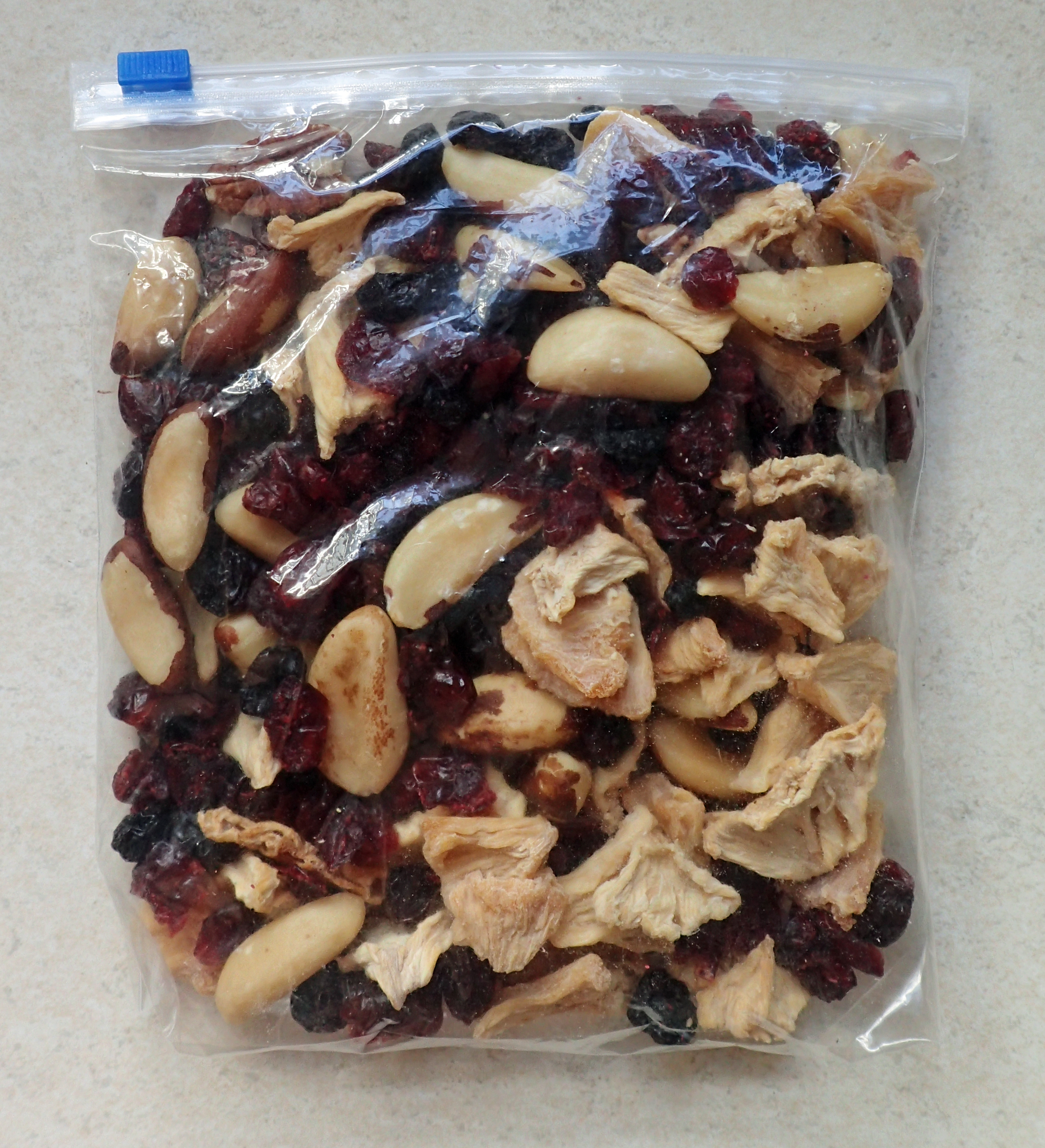 | Snacks- Salami type sausage / Nuts & dried fruit, Craisins, dried pineapple / Sesame bar for each day + trail bar | |||||
