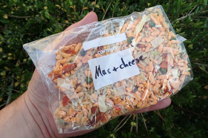 I thought I would have a play around and knock up one dried meal by myself. Not at all difficult to make a simple mac ‘n’ cheese. The one I have produced is also a little healthier as it misses out all the preservatives and oddities at the end of any packet ingredient list. Rehydration is quick and not only is is pretty tasty but the 195g (incl ziplock) also delivers 760kcal.