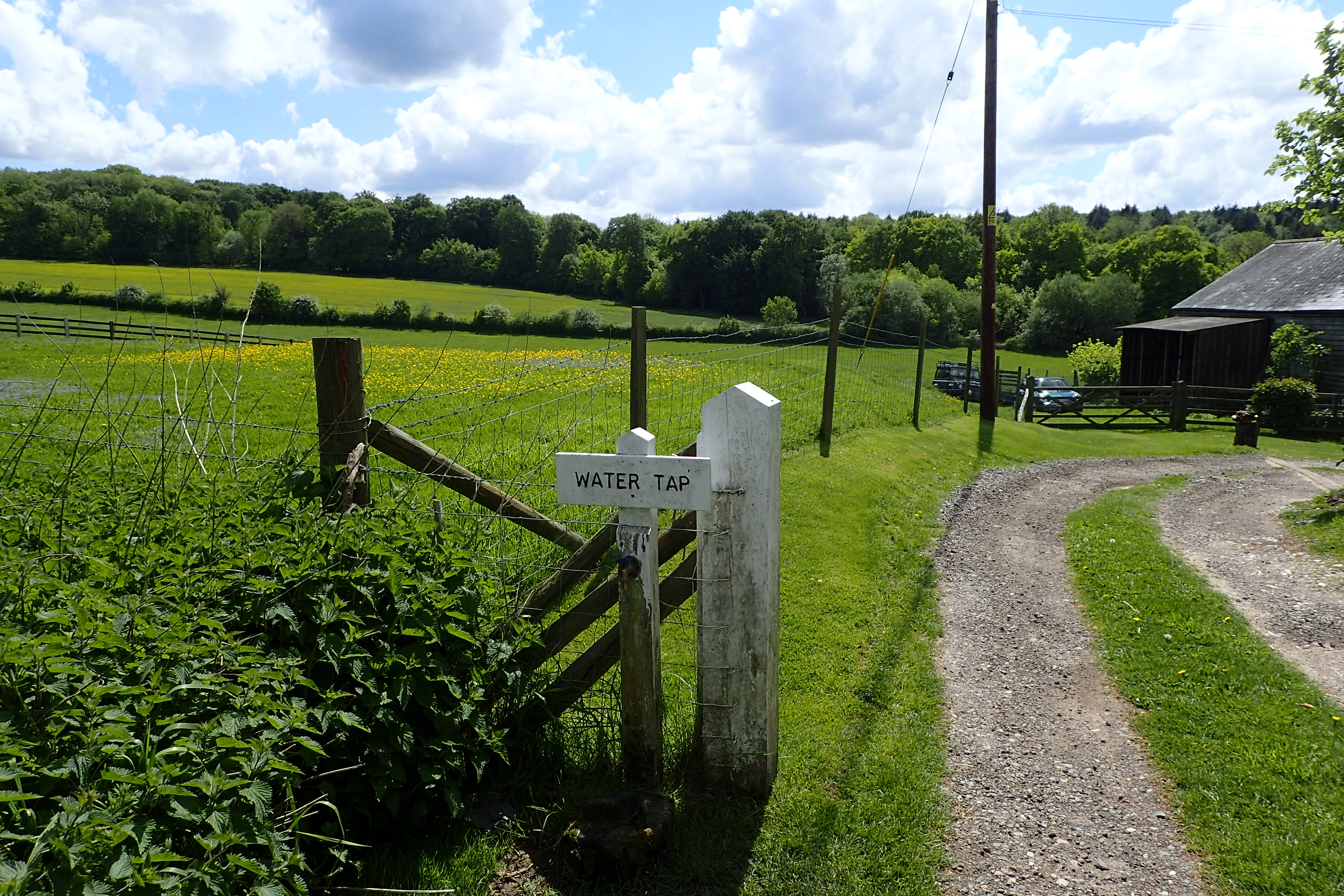 All of the water points that I located on the trail were sign-posted, were working and provided good, fresh, cold water. I started out on the walk carrying 1900ml of water with me in two 850ml Smartwater bottles. This was enough to see me through my short half day to my first halt at a farm near Ogbourne St. George. There is supposed to be a water tap available at Southend (SU198734), just prior to the village, but I failed to locate it. I camped in the horse paddock of Fox Lynch, filling up for that evening and the following day from a tap in the farm yard. If stopping for water there, do ask first as not all of the taps provide potable water.