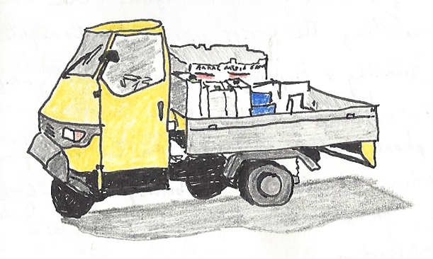 Pen, pencil and coloured lead. A favoured form of transport- Sicily, August 2016
