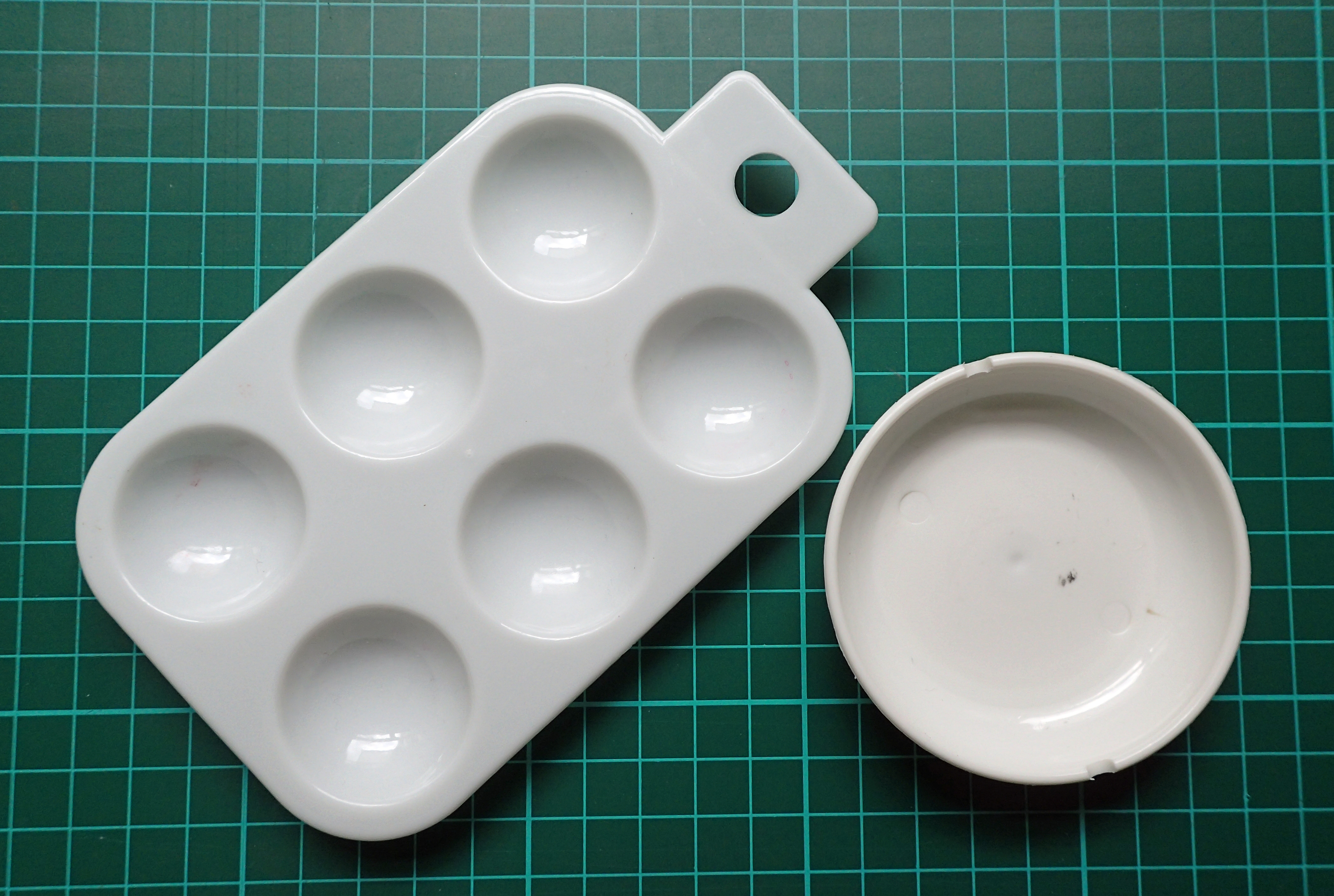 Small, lightweight (16g and 11g) plastic pallets were also taken for watering down and thinning, or mixing inks