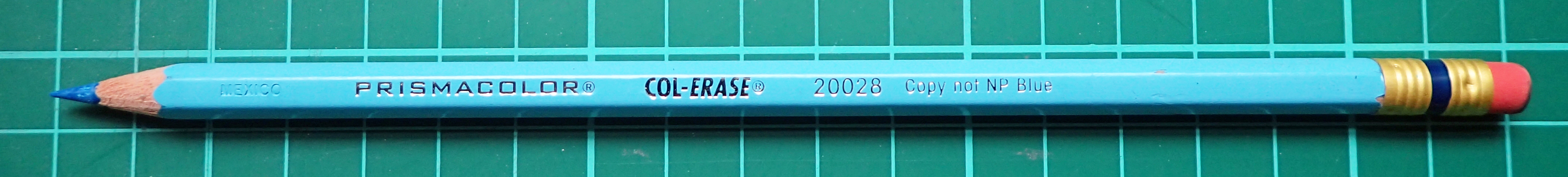 Prismacolor Col-Erase 200028 Copy not NP Blue pencil. The mark produced by this pencil is barely discernible on the paper