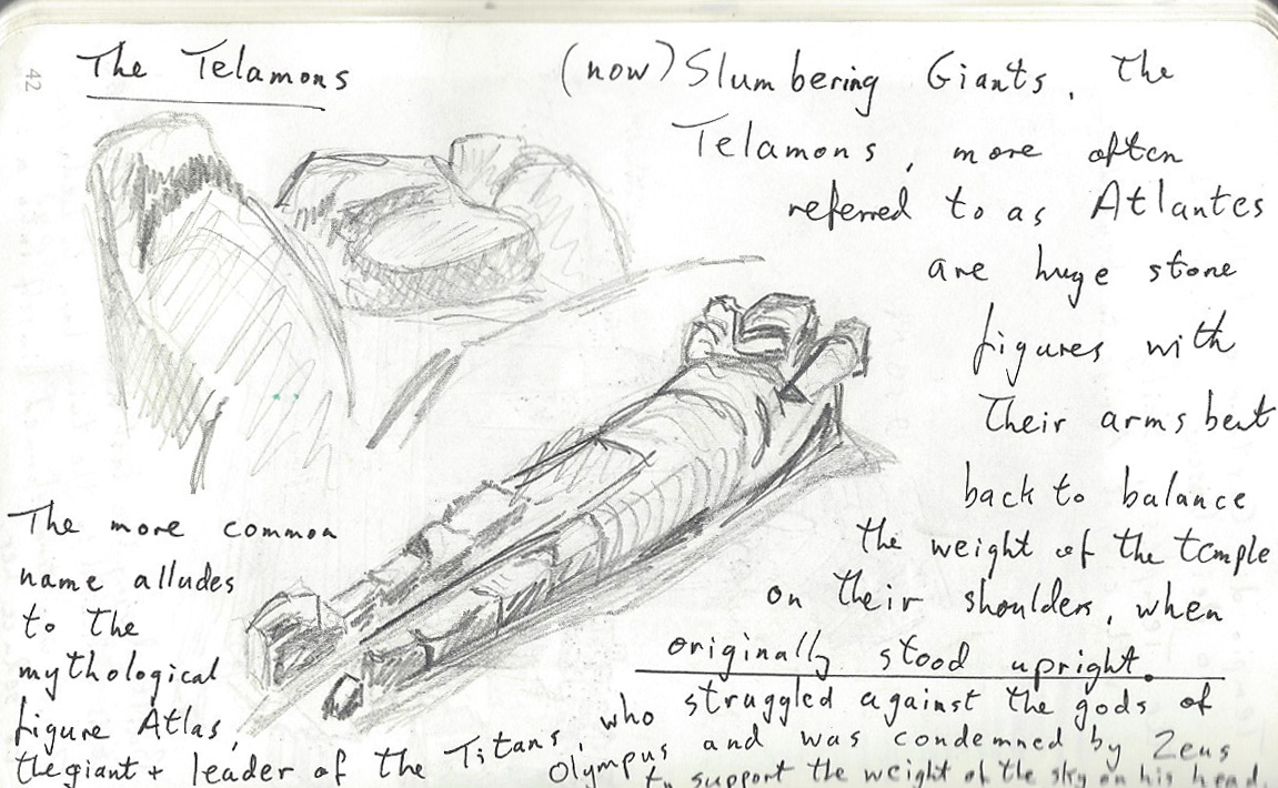 Pencil sketching- The Telamons. Valley of the Temples, Sicily, August 2016