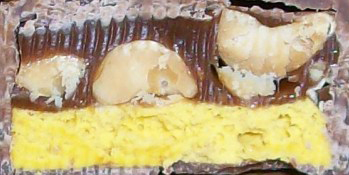 I wonder if the Peanut Butter squares were inspired by the short-lived Snickers Peanut Caramel chews of 2006? Perhaps not, those had no nougat, whereas these square bars, complete with peanut butter, peanuts, caramel, nougat and covered with milk chocolate, are quite excellent. Incidentally, I certainly prefer the Squares over just about any of the Reece’s Peanut Butter products, which I find tooth enamel stripping sweet.