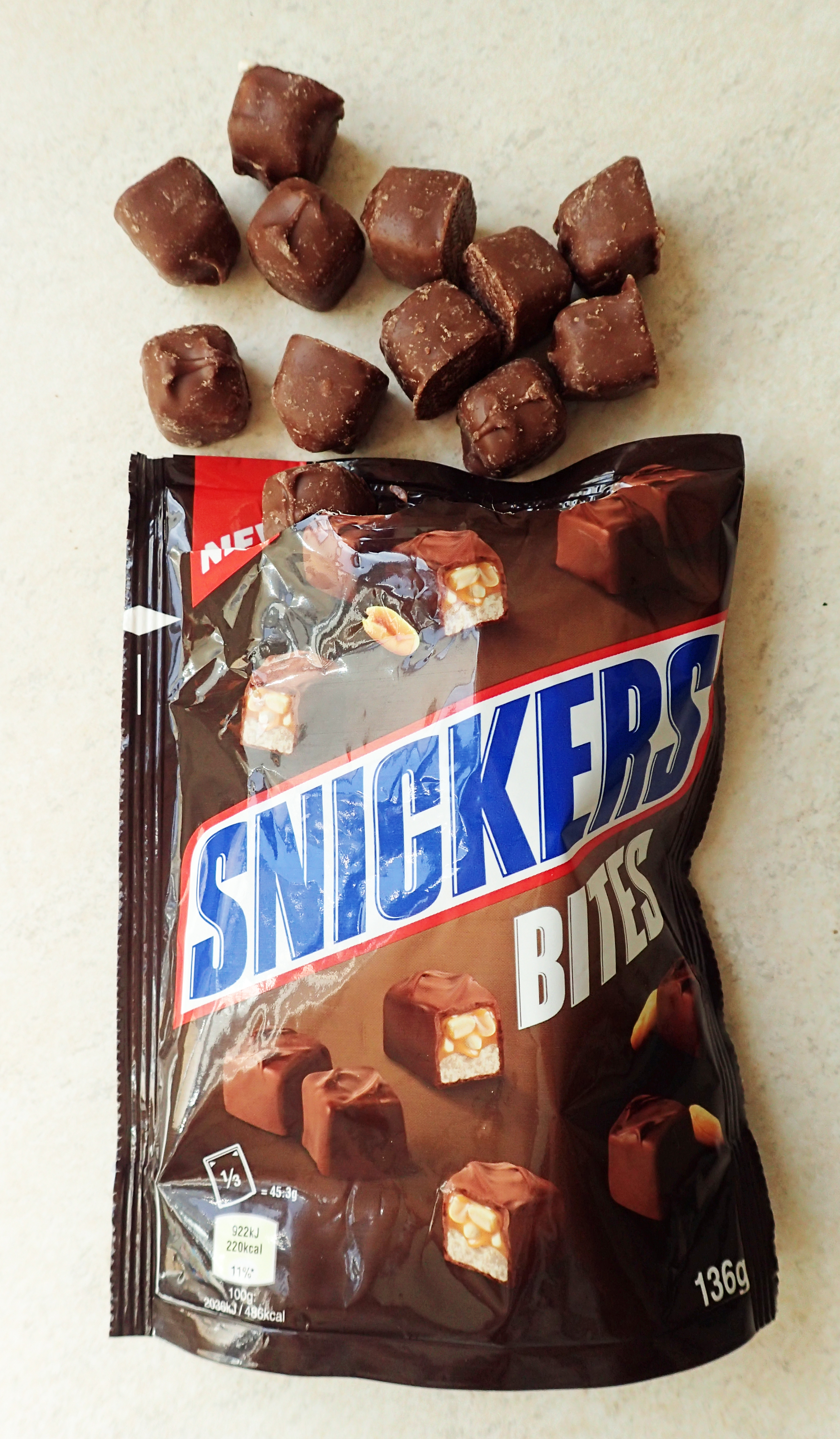Snickers Bites: released around 2013, but only appearing in any large quantity in the UK in 2016. Each 220kcal ‘bite sized portion’ weighs 45.3g, pack size is 136g. Photographed 2016