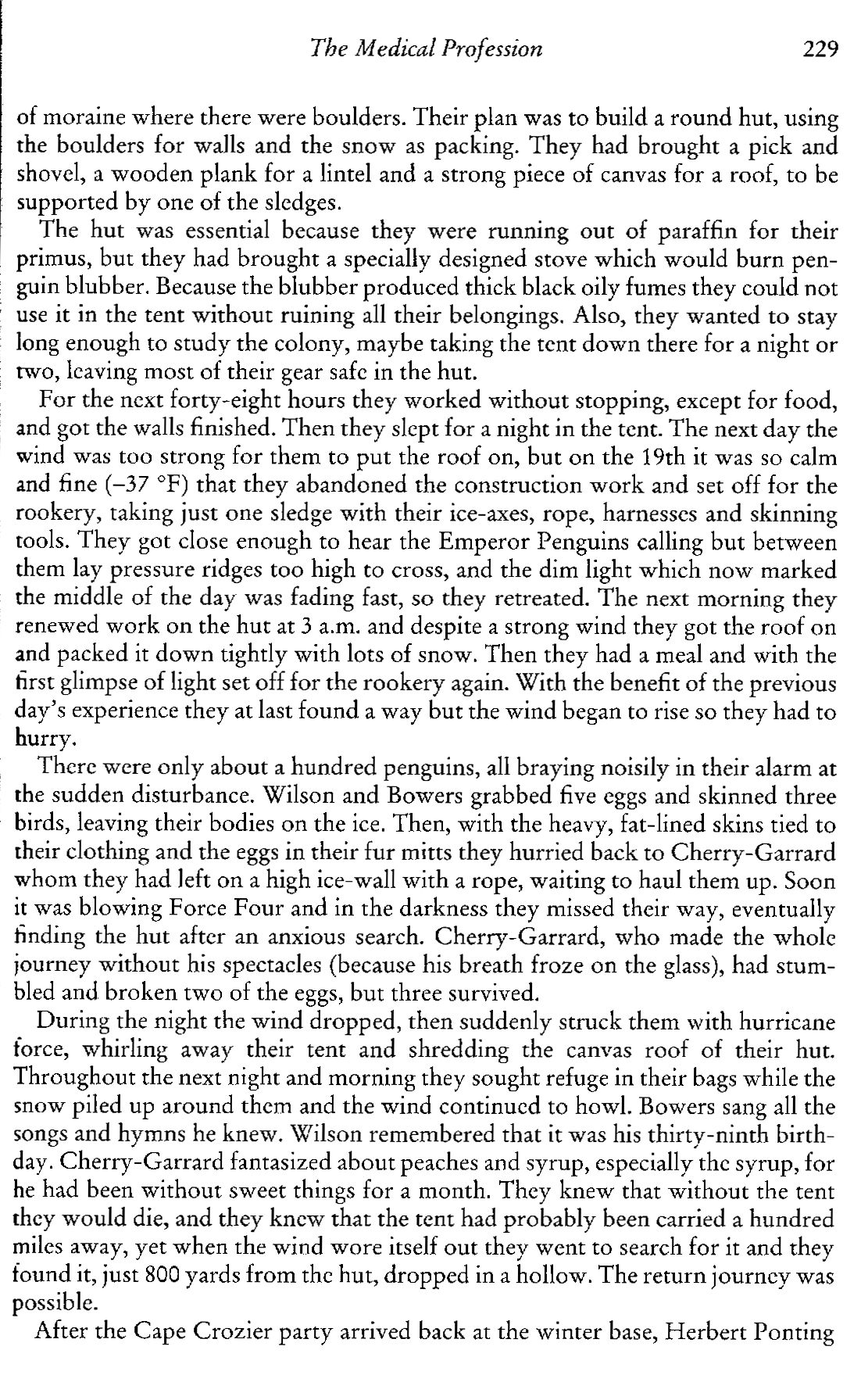 A page relaying part of the story of ‘The Worst Journey in the World’; an expedition in the dead of winter to collect eggs of the Emperor Penguin. Dr ‘Bill’ Wilson returned to the Antarctic with Scott in 1910 and persuaded the leader to allow him, accompanied by Henry Bowers and Apsley Cherry-Garrade, to attempt to visit the penguin colony sixty-seven miles from their base. Setting off on 27 June 1911, they succeeded in collecting three eggs. It was hoped that the eggs and their intact embryos would reveal truths as to the origin of birds. These were subsequently delivered to the British Museum (Natural History) by Cherry-Garrard in 1913. Wilson and Bowers had perished with Scott on the return journey from the South Pole. The eggs were received without thanks