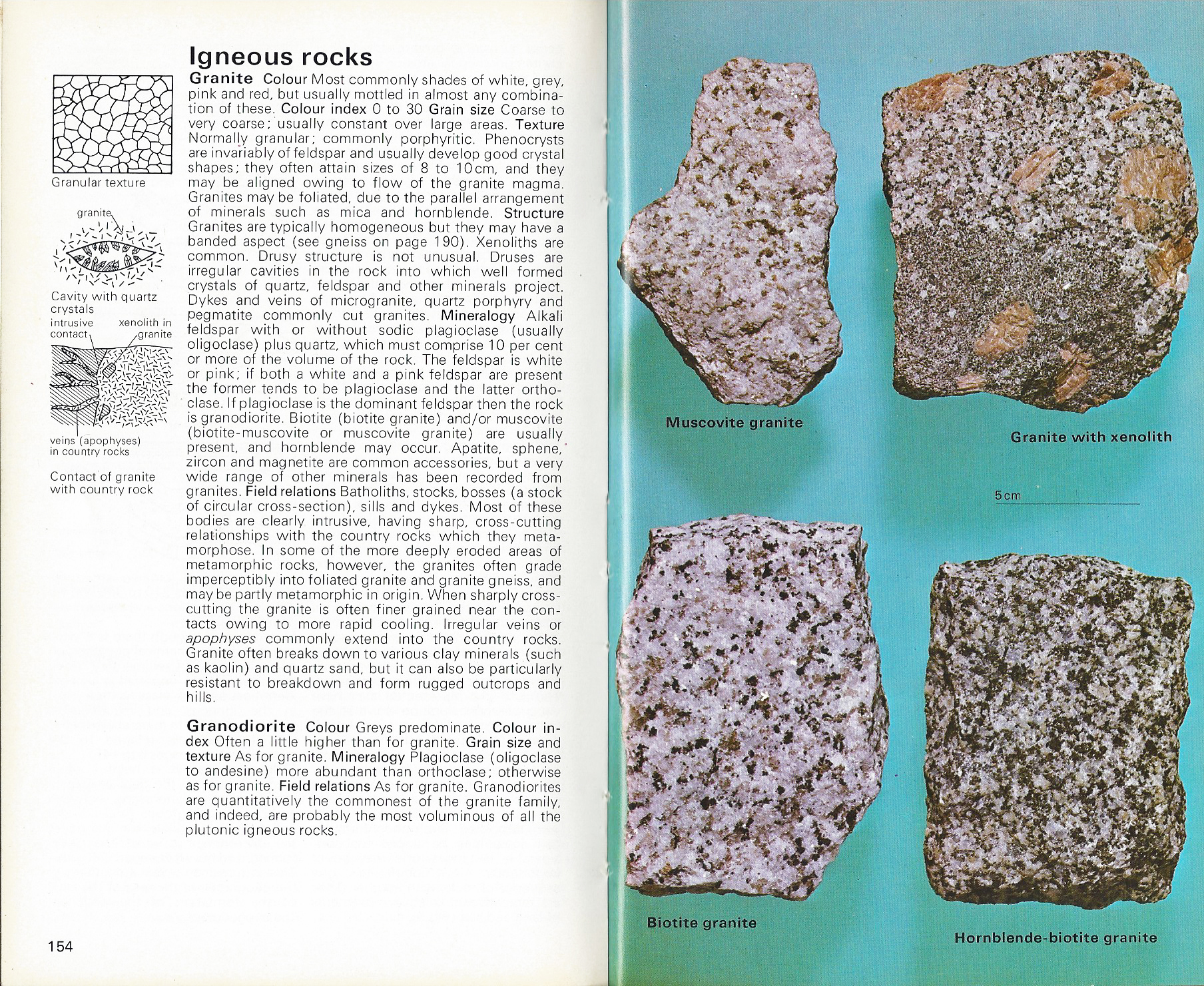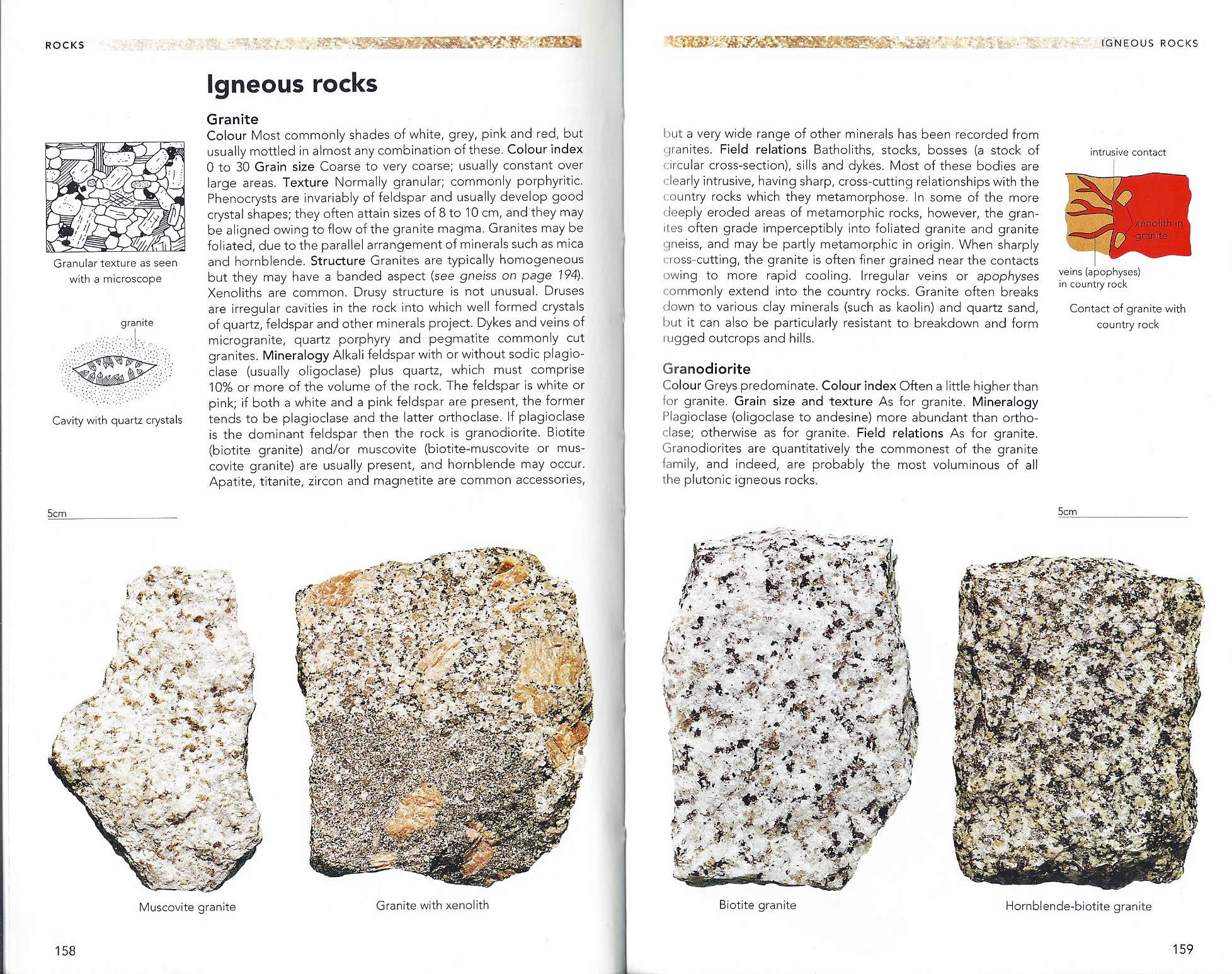 The opening pages from Philip’s Guide to Minerals, Rocks and Fossils that cover Igneous rocks, beginning with Granite