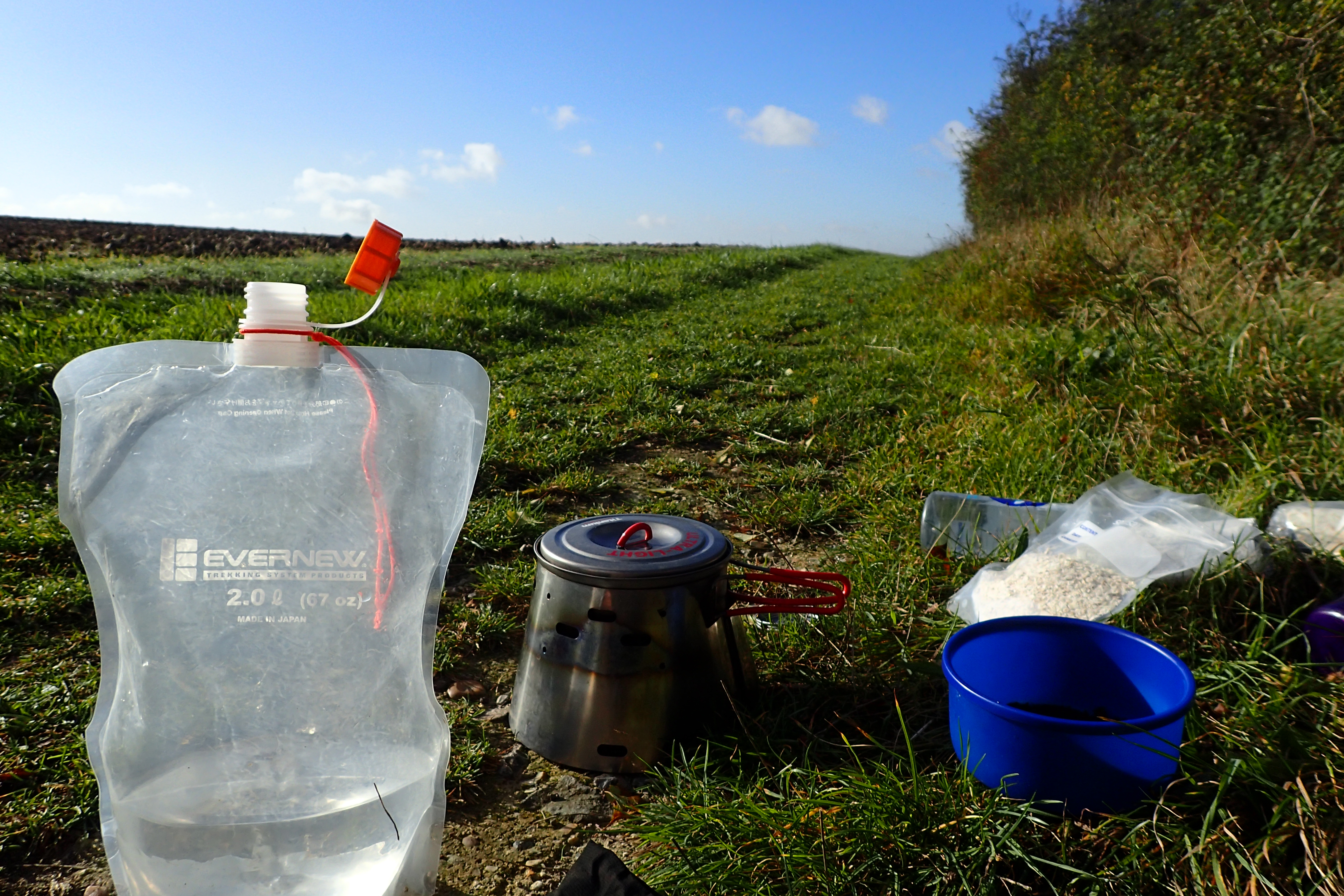 I have long preferred meths (alcohol) for cooking with. I find it pretty much fuss free, silent and my little burner, when combined with the very efficient Caldera Cone, is as efficient a system in a breeze as you are ever likely to find. I have no real issues with my system, particularly for shorter jaunts such as the Icknield Way. I store my fuel in a bottle that use to hold hot sauce, this has a nozzle cap for directing and controlling the fuel issued.