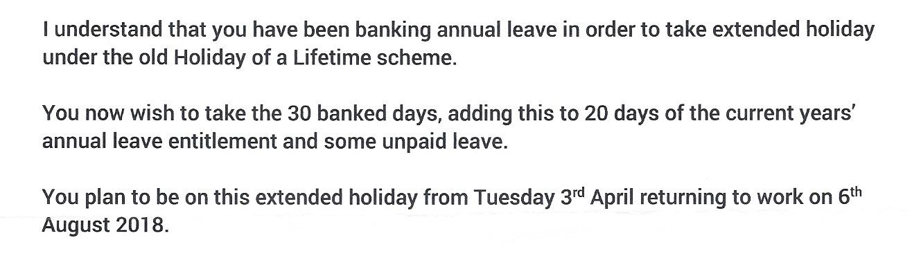 The daylight hours are spent at work. There are a number of things I need to finish off, pass to someone else, or put on hold until my return. I finally received official sanction to include some unpaid leave alongside an extended holiday and include days I have been able to bank over the past decade.