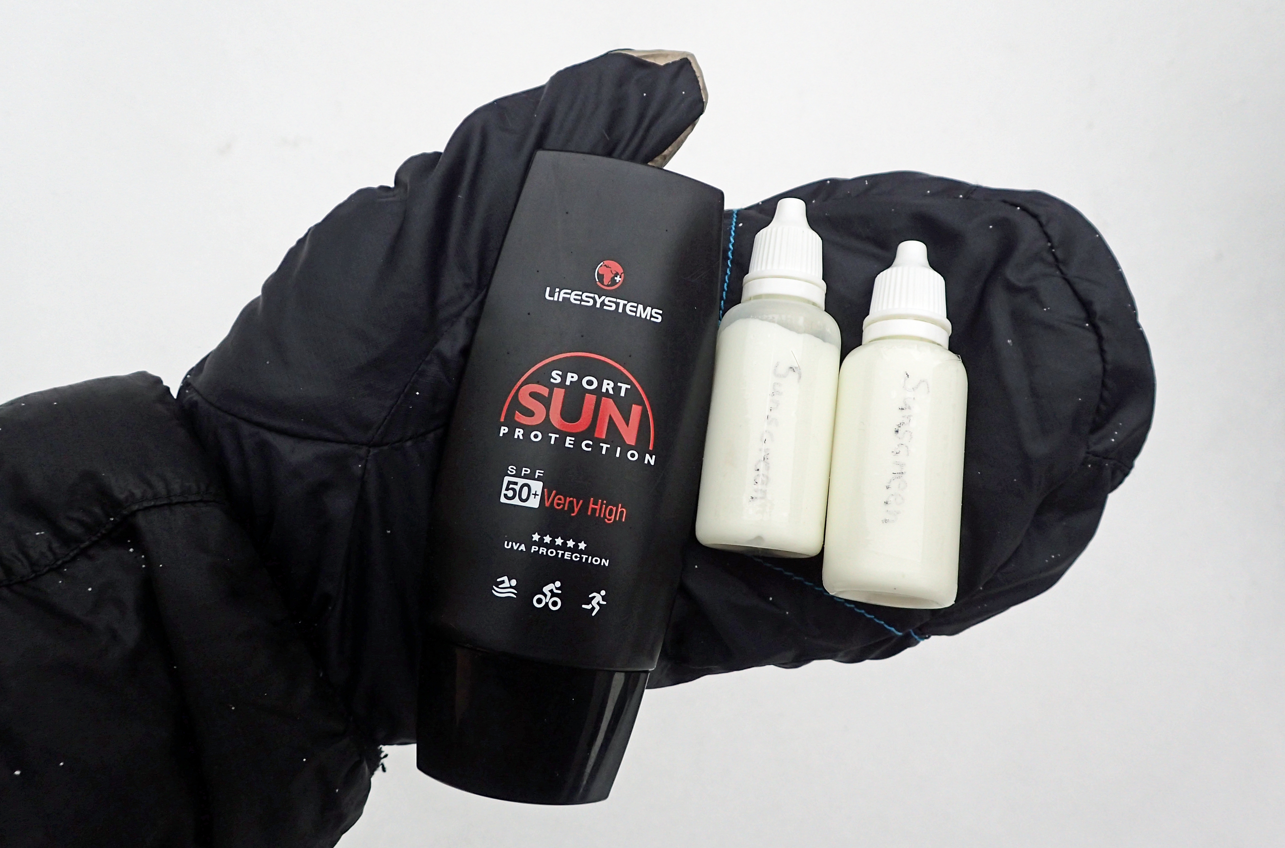 Prism Mitts from Montane are a fantastic choice for lower temperatures. Three Points of the Compass will also be carrying one small bottle of sunscreen in his pack, hopefully neither item will be required