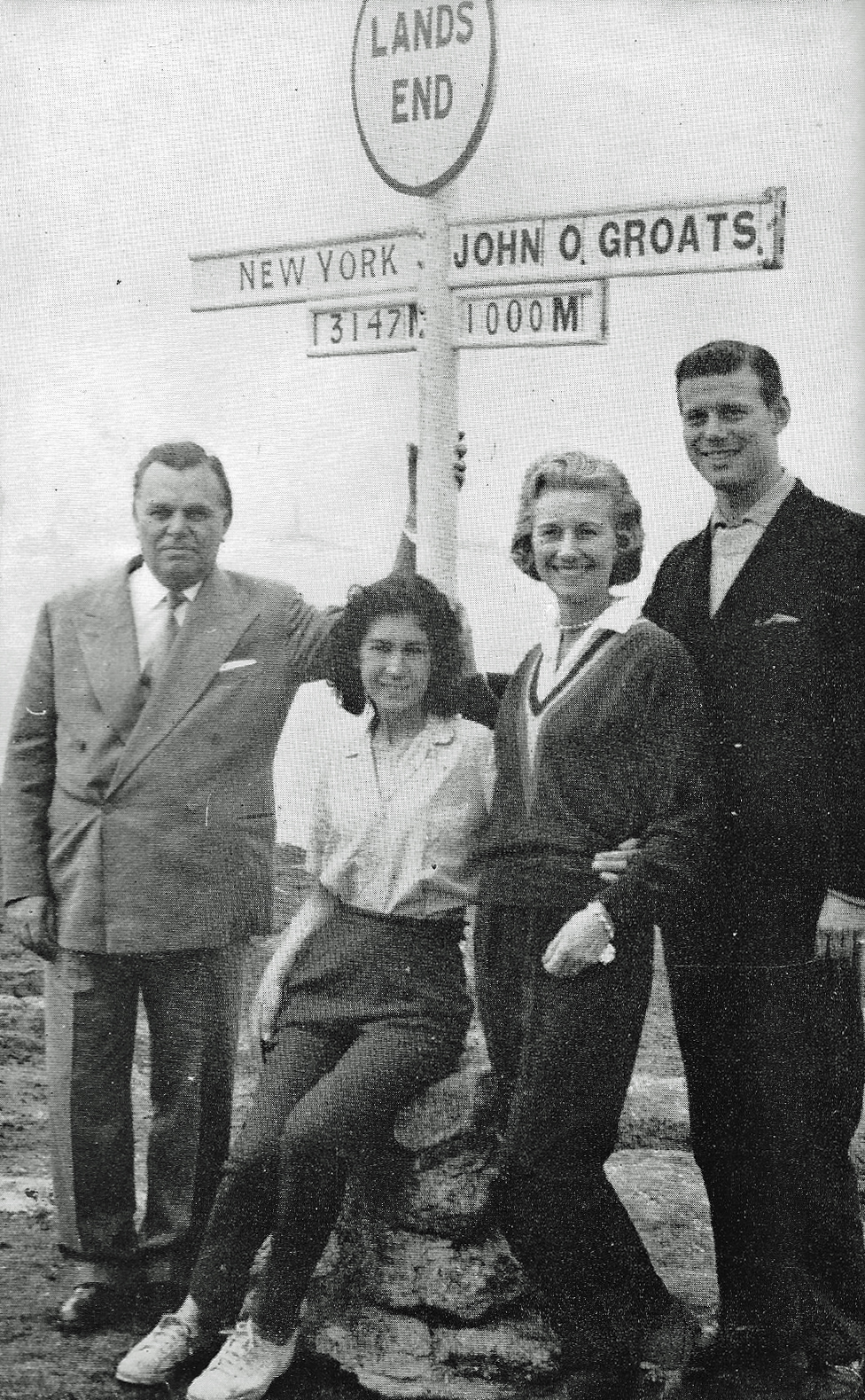 18 year old Wendy Lewis was the first female home on The Big Walk. She and the second female eacgh collected £1000 prize money from Sir Billy Butlin, shown here with his wife and son at Land's End