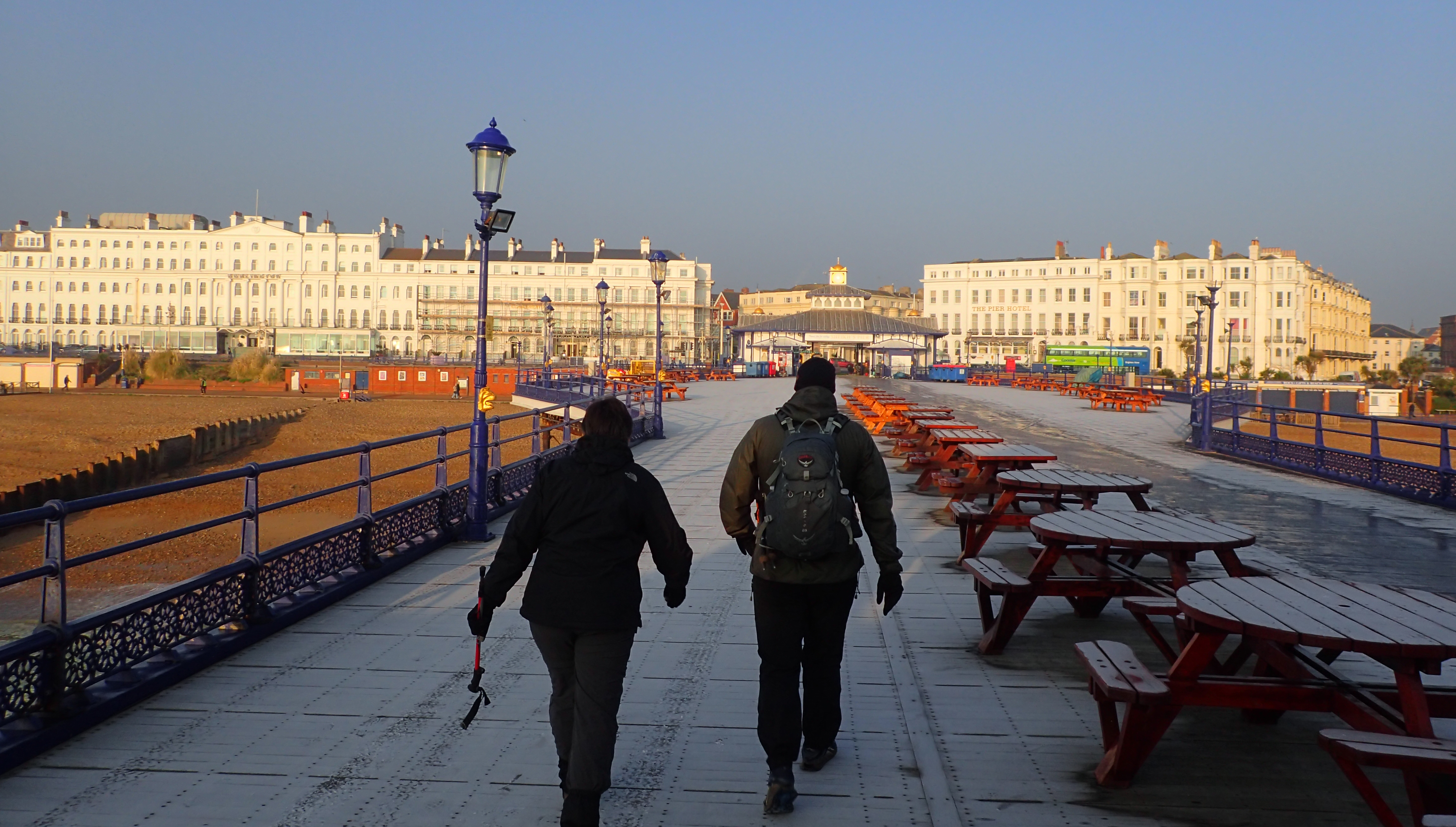 Mr and Mrs Three Points of the Compass set off on a cold winters morning from Eastbourne Pier for our first day on the Wealdway