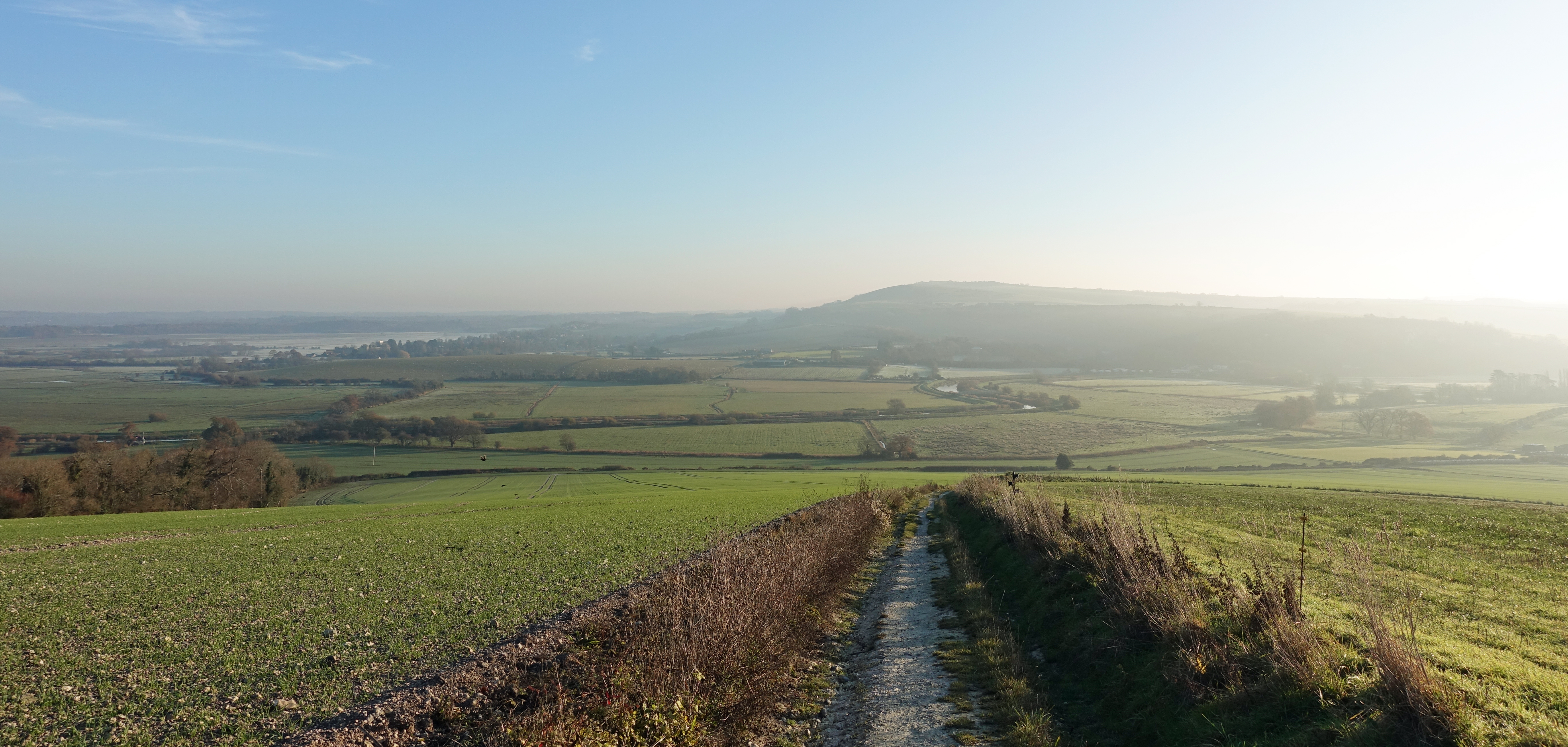 The South Downs Way is a 100 mile National Trail between Winchester and Eastbourne. it follows the northern escarpment within the South Downs National Park for most of its distance and is a fairly gentle walk along the chalk downs with only occasional drops to cross river valleys.