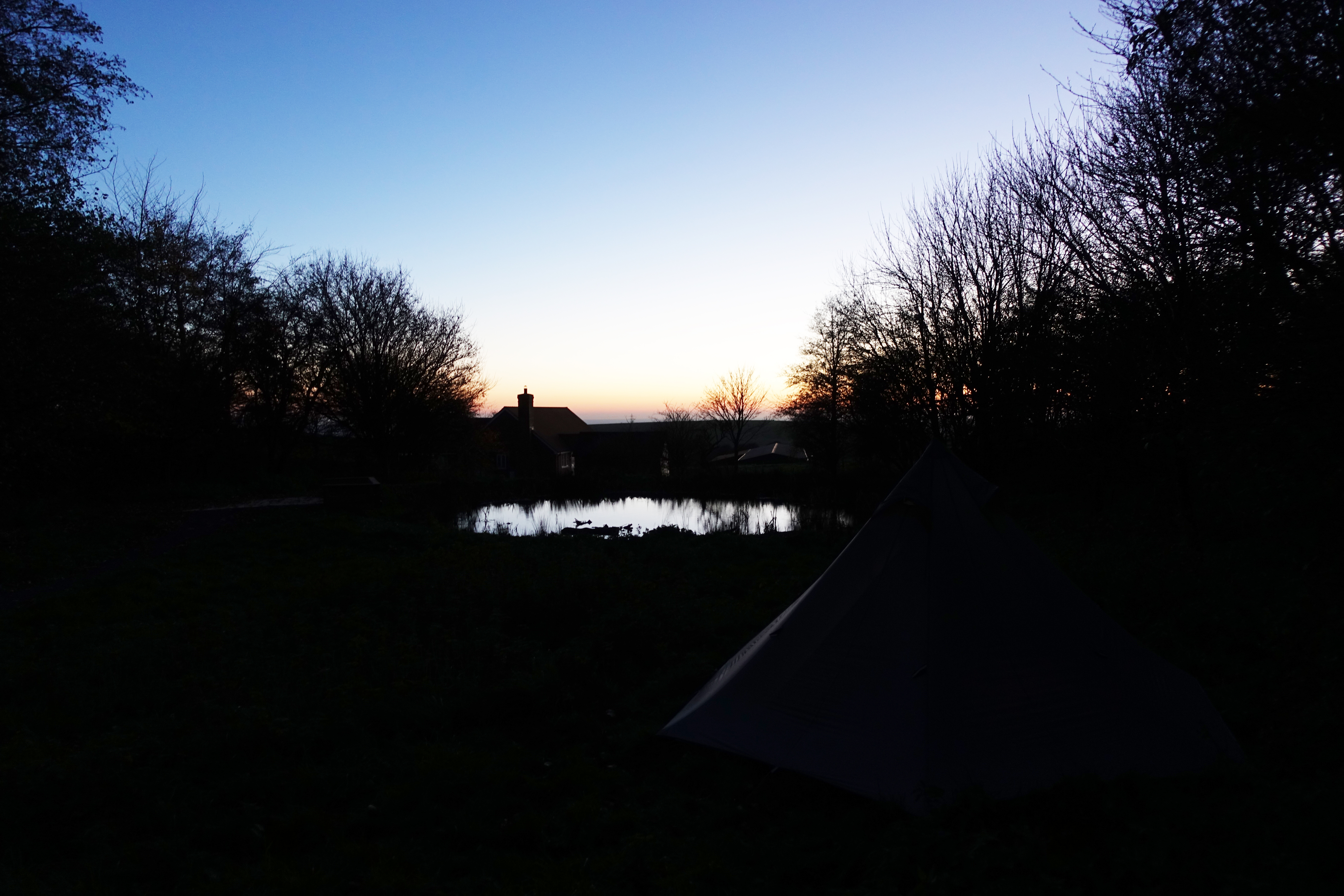 Sunday night’s camp was in the field opposite Truleigh Hill Youth Hostel. A lovely still evening and a cold night