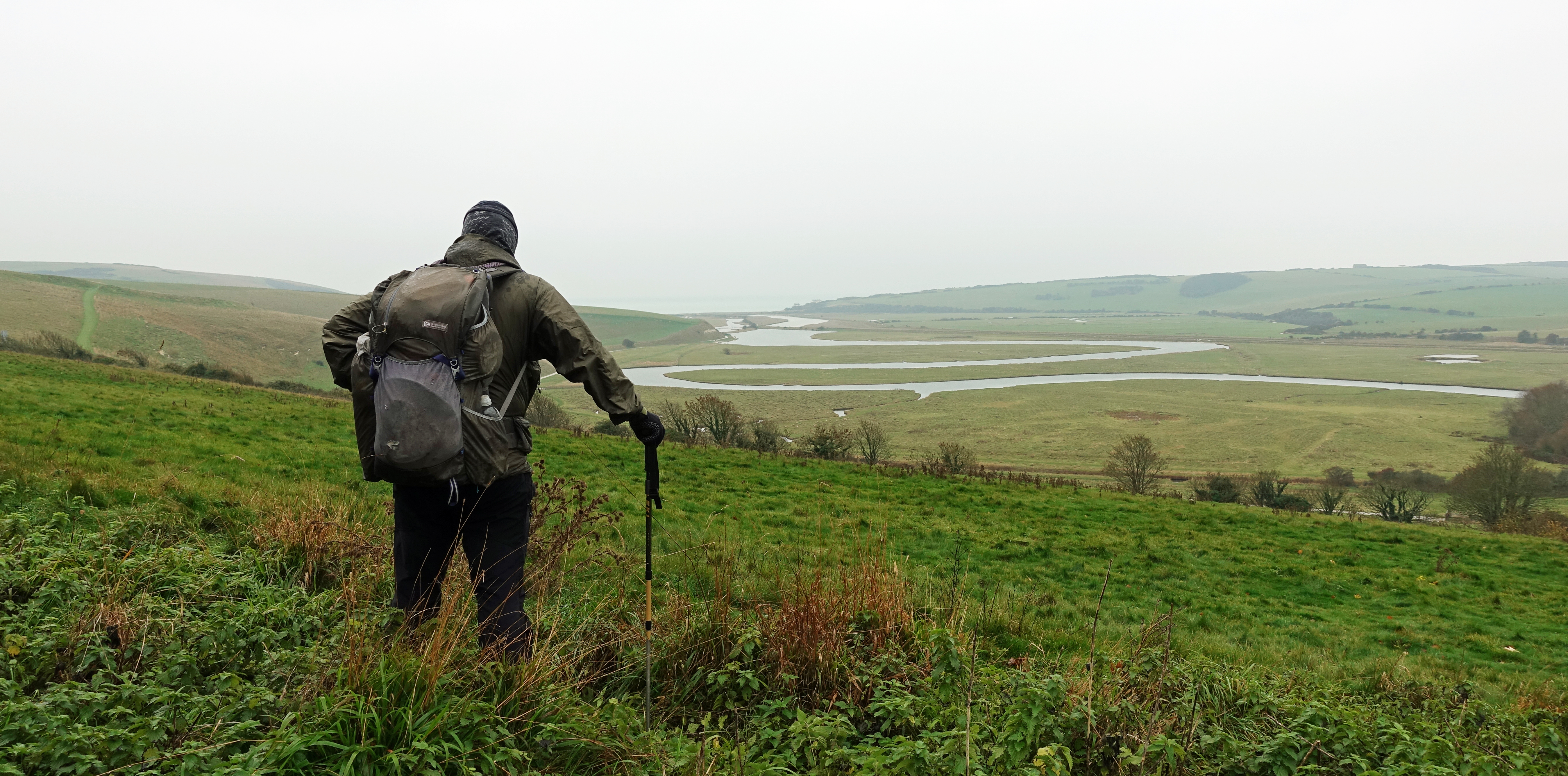 However the weather had indeed changed and it was rain for much of the day, if it wasn’t raining, it was mostly sleet or hail, such fun! It didn’t really bother me as it was driving in to me from behind or my left, so I was able to keep the hood of my Velez Adventure Lite smock up and was warm and dry to the great extent. My legs got wet but never cold, if it briefly stopped raining, the Montane Terra trousers dried quickly in the stiff wind. This was almost twenty two miles from the Youth Hostel to Eastbourne Pier where I was finishing my South Downs Way hike. Then about face and another long ascent back out of town to that nights halt at YHA Eastbourne. I arrived before five and had to stand outside until the warden unlocked. This remains a ridiculous YHA requirement that has been largely done away with by independent hostels. I was also less than pleased to find there was no food provided on site and there was nowhere in the vicinity. Not fancying another slog back down into town that night, I was able to rustle up sufficient from my almost totally diminished food supplies supplemented by a little pasta left in the kitchen to make an ‘OK’ last meal. The warden even found a bottle of wine for me, bonus.