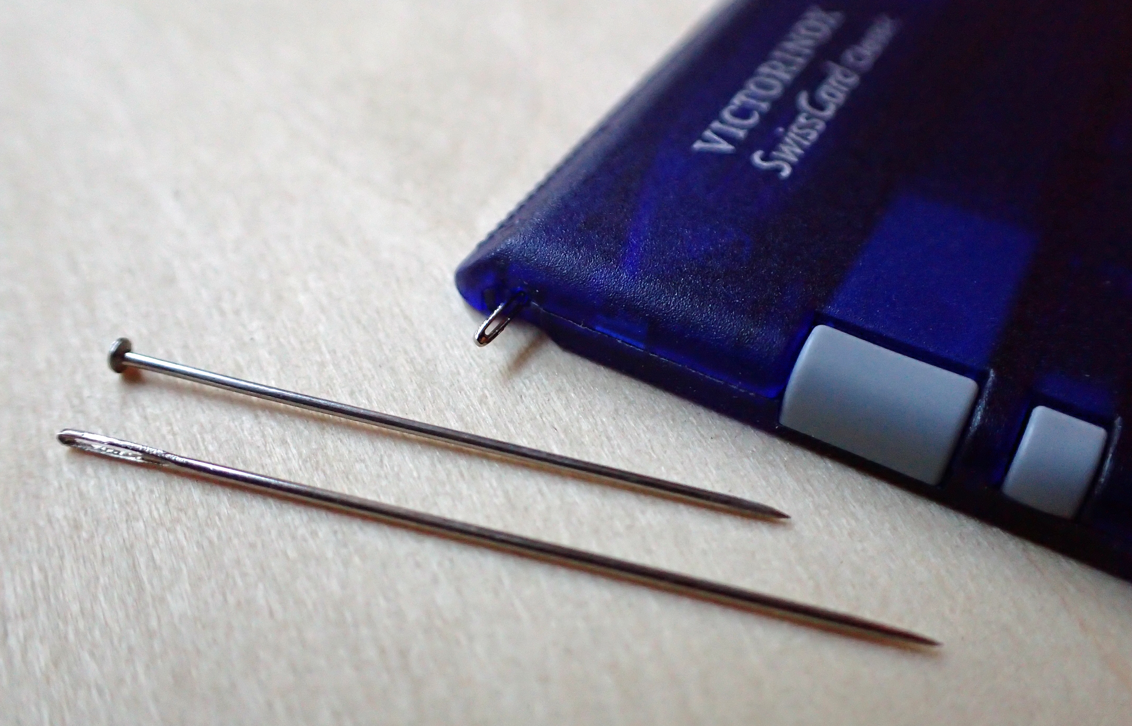 One option with a SwissCard is to replace the pin with a needle. This replacement is a Size 7 embroidery/crewel needle