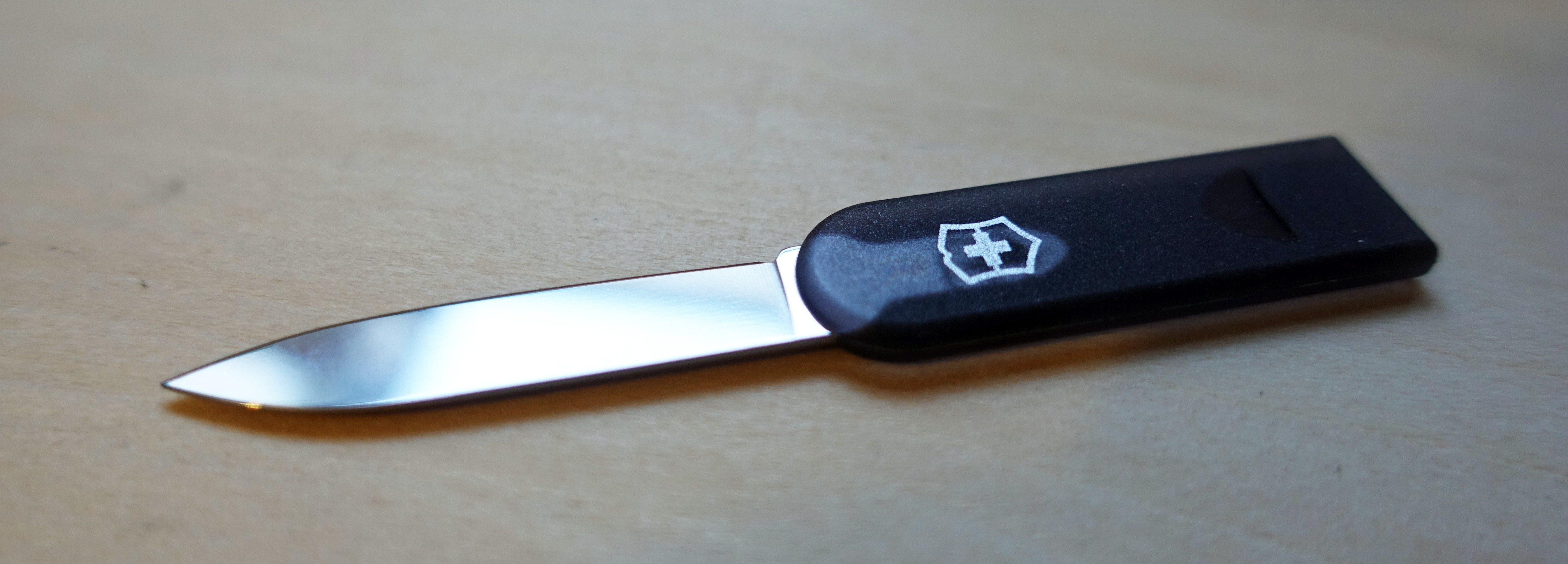 Blade length is only 36mm on the little knives, which are often called letter openers, incorporated in the SwissCards. Though short, this is usually more than sufficient for most tasks on trail. There is a sharp blade and it keeps an edge pretty well