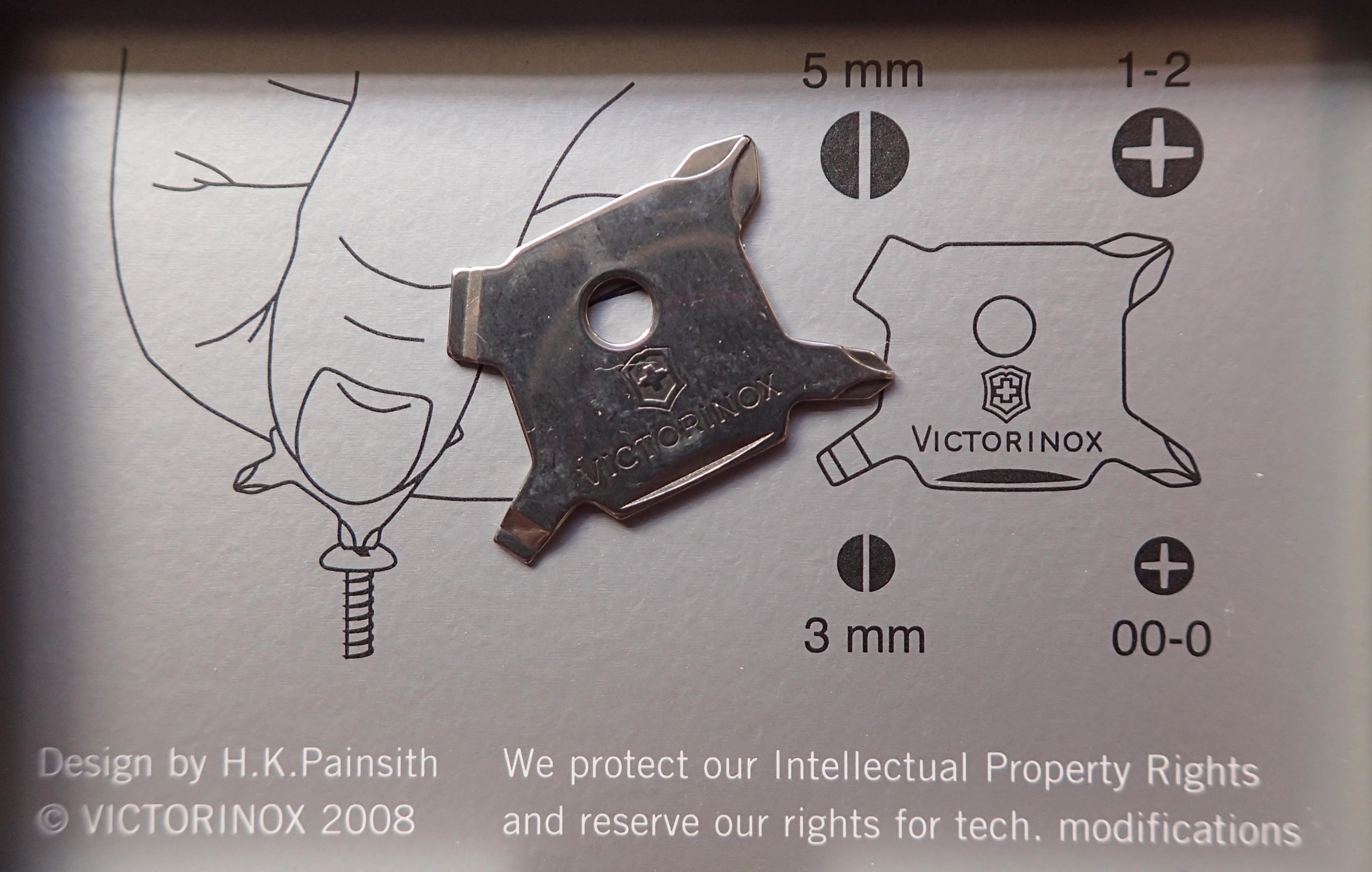 The 22.2g SwissCard Quattro was released in 2000 and this saw the handy little four-way Quattro screwdriver made available for the first time. This is so small and convenient that even if I am not carrying one of the cards with me while hiking, one of the 2.6g screwdrivers is often sitting in my ditty bag. Sadly, the inclusion of the screwdriver was at the expense of the scissors, which are excluded from the SwissCard Quattro. A hole was added to the corner of the card enabling it to be hung from a keyring or lanyard.
