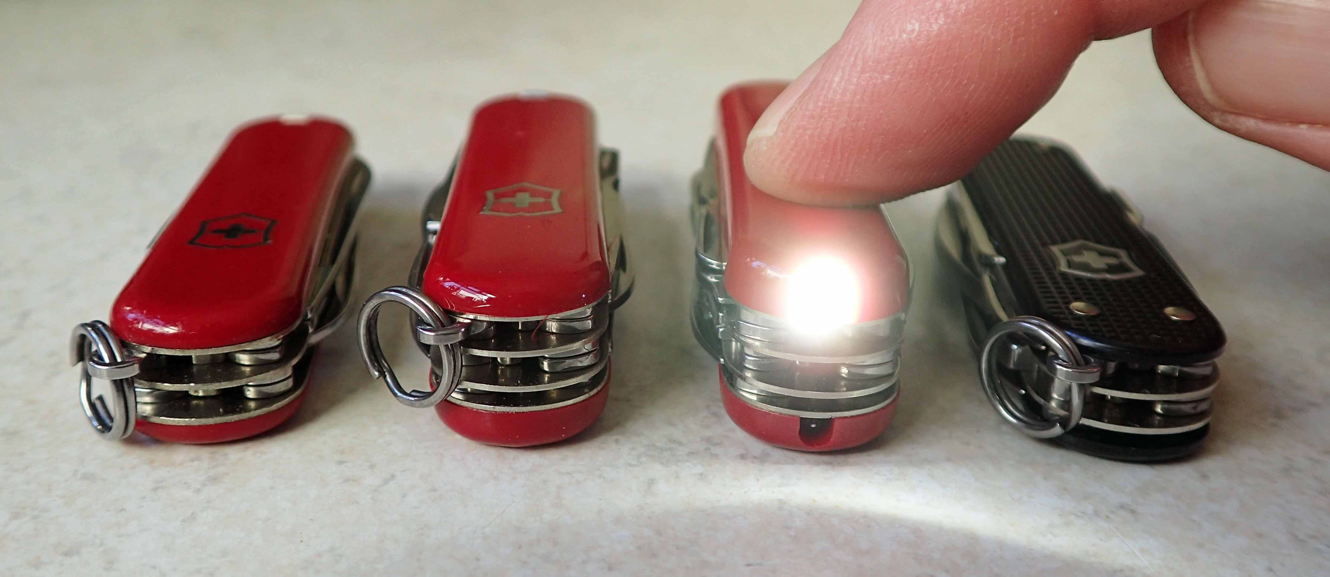 Four impressive knives- from left: Original MiniChamp, MiniChamp, Midnite MiniChamp with white LED, Alox MiniChamp