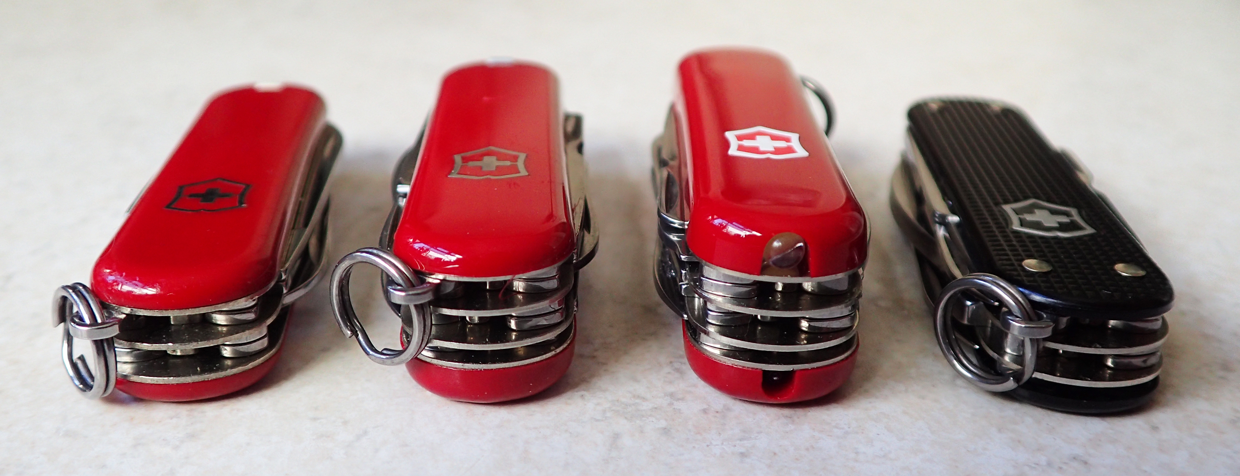 My previous post on 58mm Victorinox knives suggested a couple of very simple knives that would be an excellent choice for taking on trail. Of the two shown, one of these, the Victorinox Escort, was identified as the fifth choice of Three Points of the Compass. Some hikers may prefer quite a degree more capability out of a knife or small multi-tool they carry. I would agree. Below, I show just four examples of the most complex of the smaller knives that Victorinox have manufactured. The final one shown is my fourth choice of 58mm Victorinox knife for taking on trail.