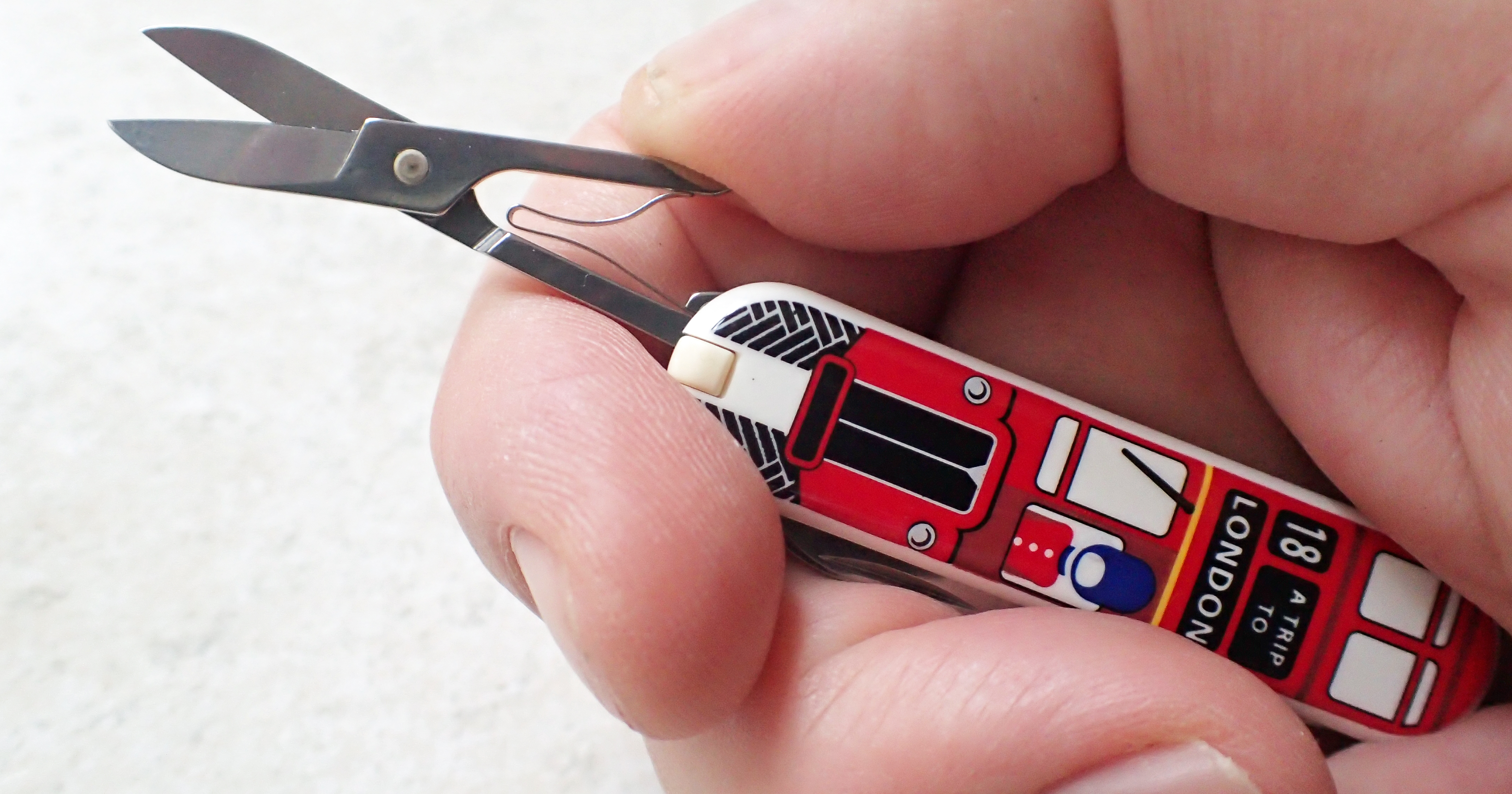 The Victorinox Classic Swiss Army Knife is available with an immense range of scales designs. Here, the effective if small scissors are shown on the ‘A Trip to London’ Classic SD from the 2018 Limited Edition range