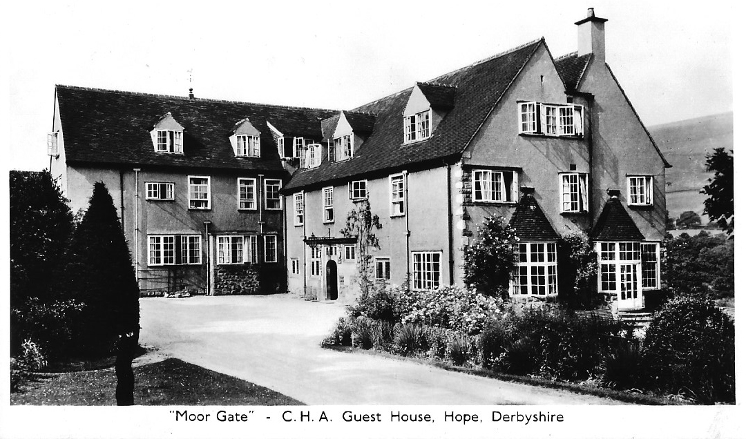 Postcard showing the Moor Gate guest house in Derbyshire, owned and operated by the Co-operative Holidays Association