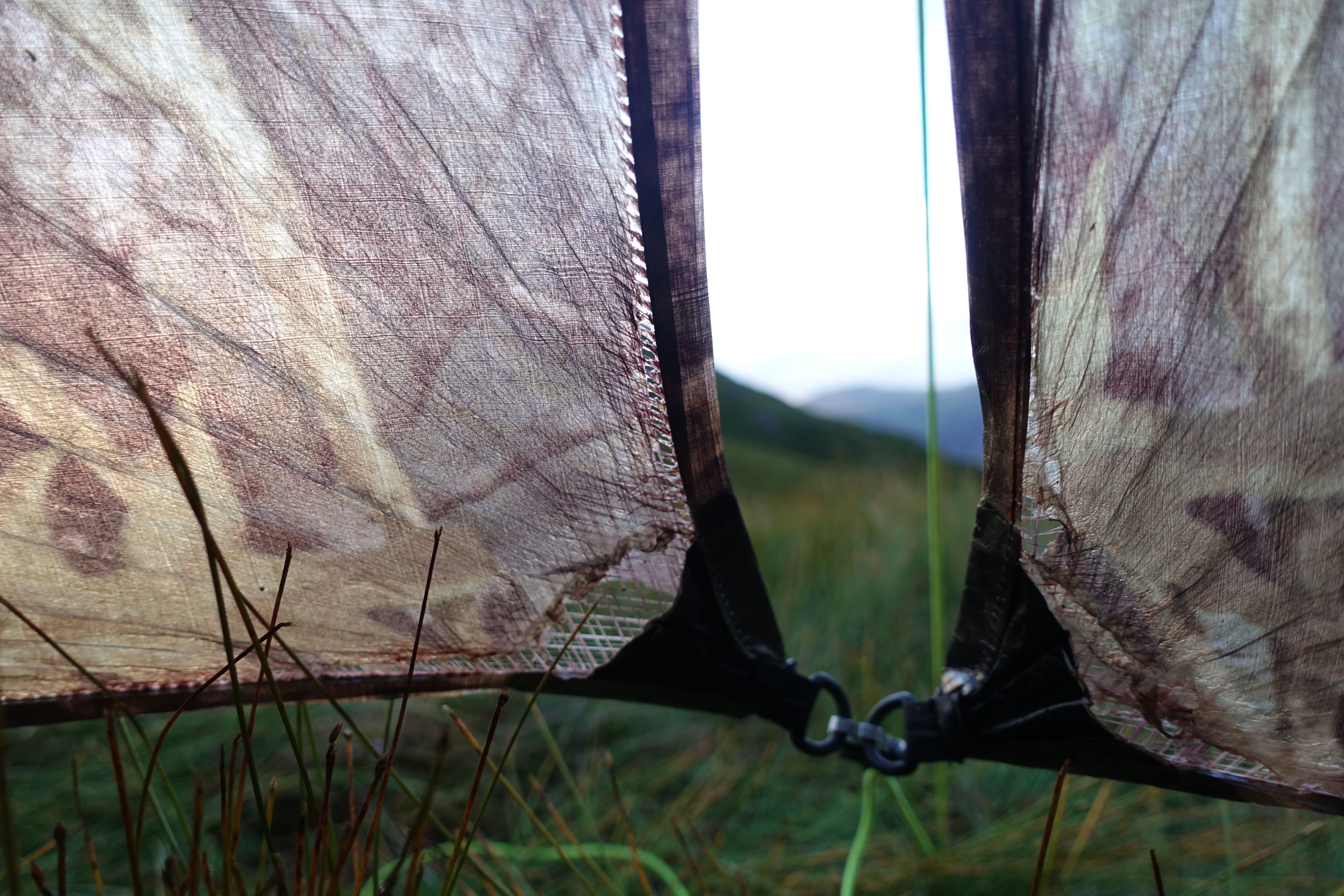 Strong winds saw a guy tie out ripped off a side wall. A cuben repair patch sorted things out