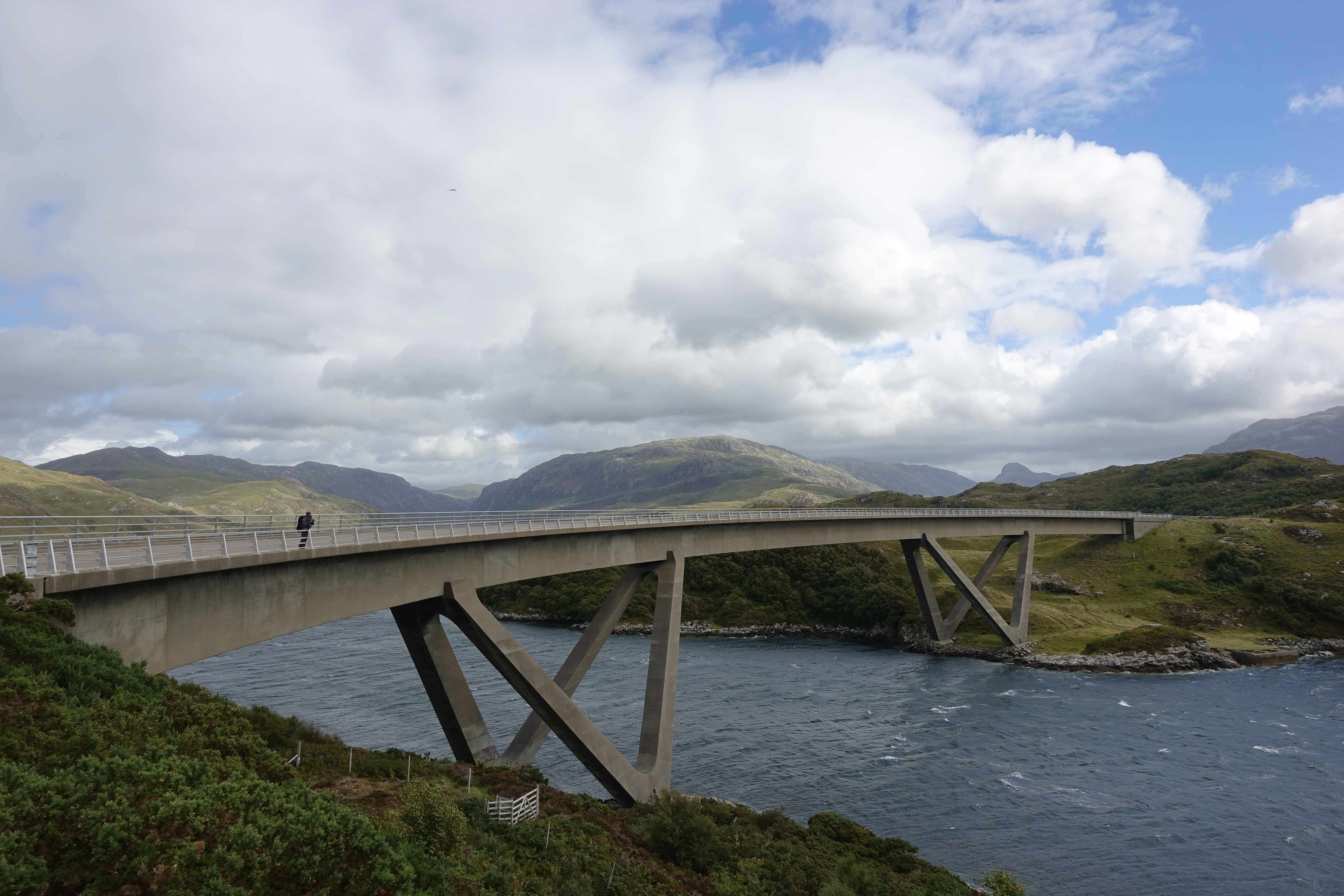 The curved Kylesku bridge was crossed in Sutherland. Wind was extraordinary and resulted in one particular unexpected gear failure
