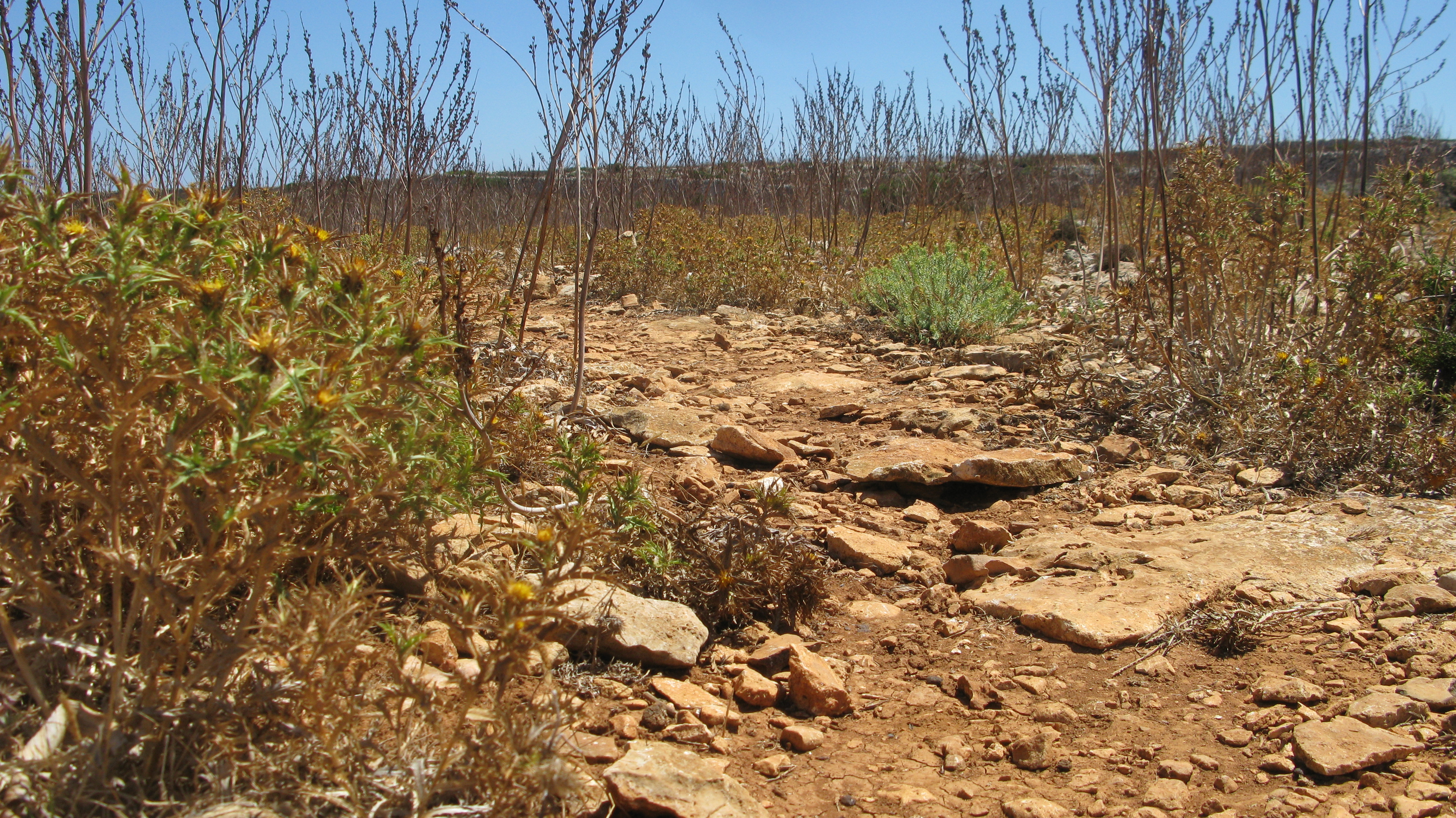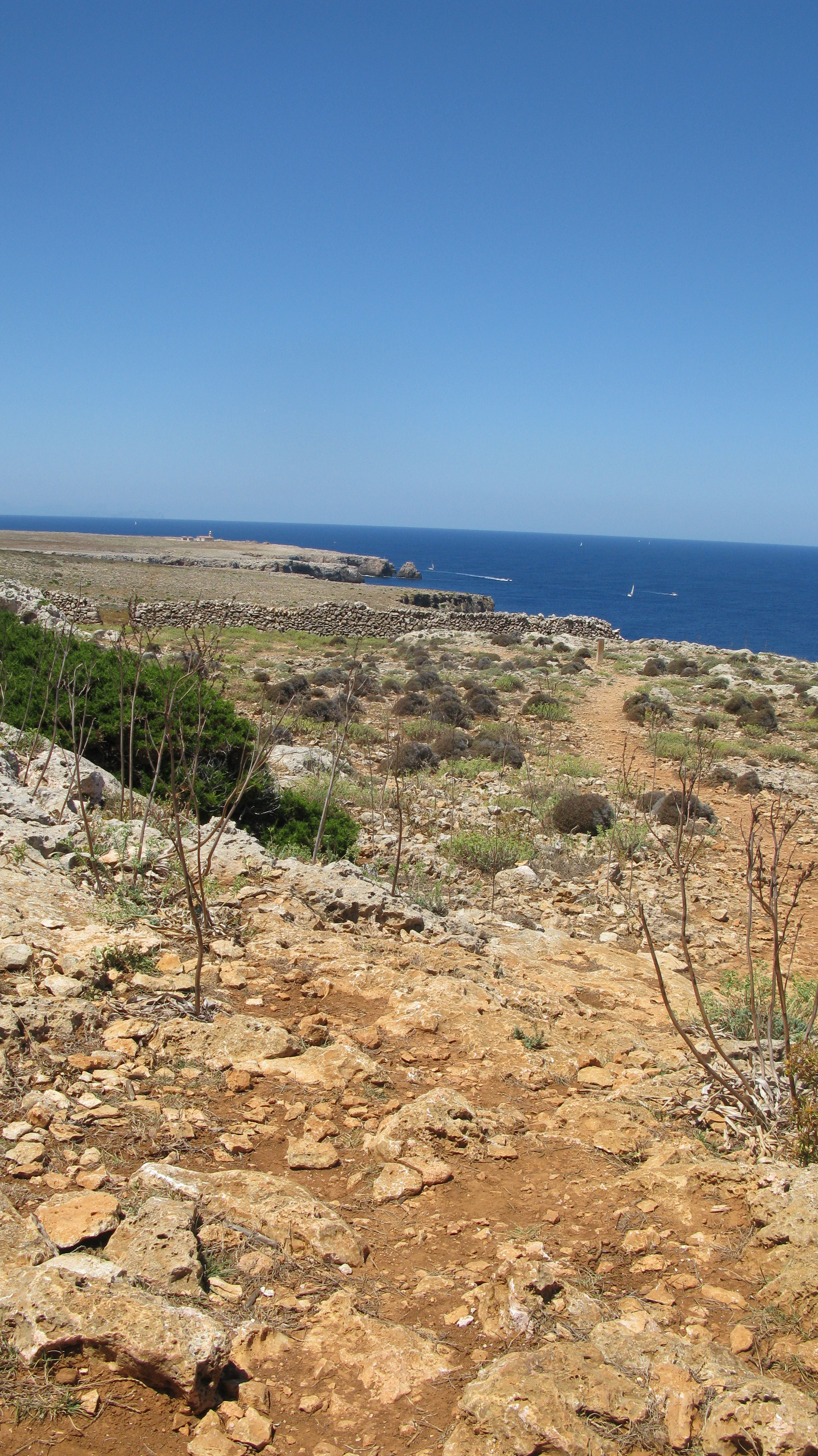 Obviously a hat and sunscreen are important too. Shorts and trail runners are fine for hiking. It is a hot and dusty trail mostly. Especially in the north west corner of the island between Cala Morell and Ciutadella. There is only scrubby sparse vegetation here and the going is rocky.