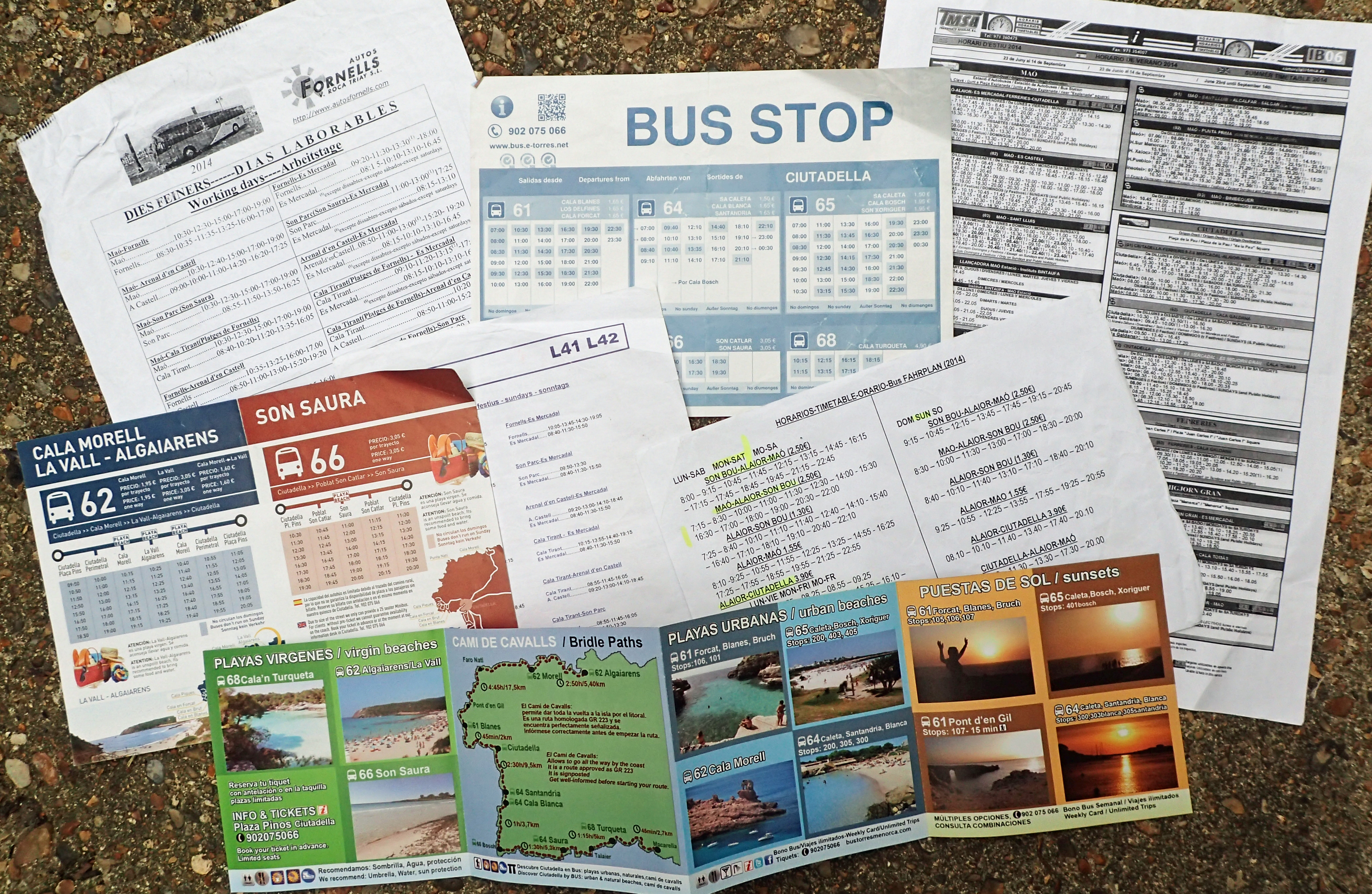 The island measures some 50km from west to east- Ciutadella to Maó and is no more than 20km north to south. But it takes time to travel around, especially by bus. Services away from the resorts are infrequent and very careful planning is required to ensure that connections will be there, especially at the end of the day. I checked online for bus timetables before I left and checked with my hotel for printed timetables when I arrived. A glance at the bus route map online reveals how some parts of the coastline are quite poorly served.