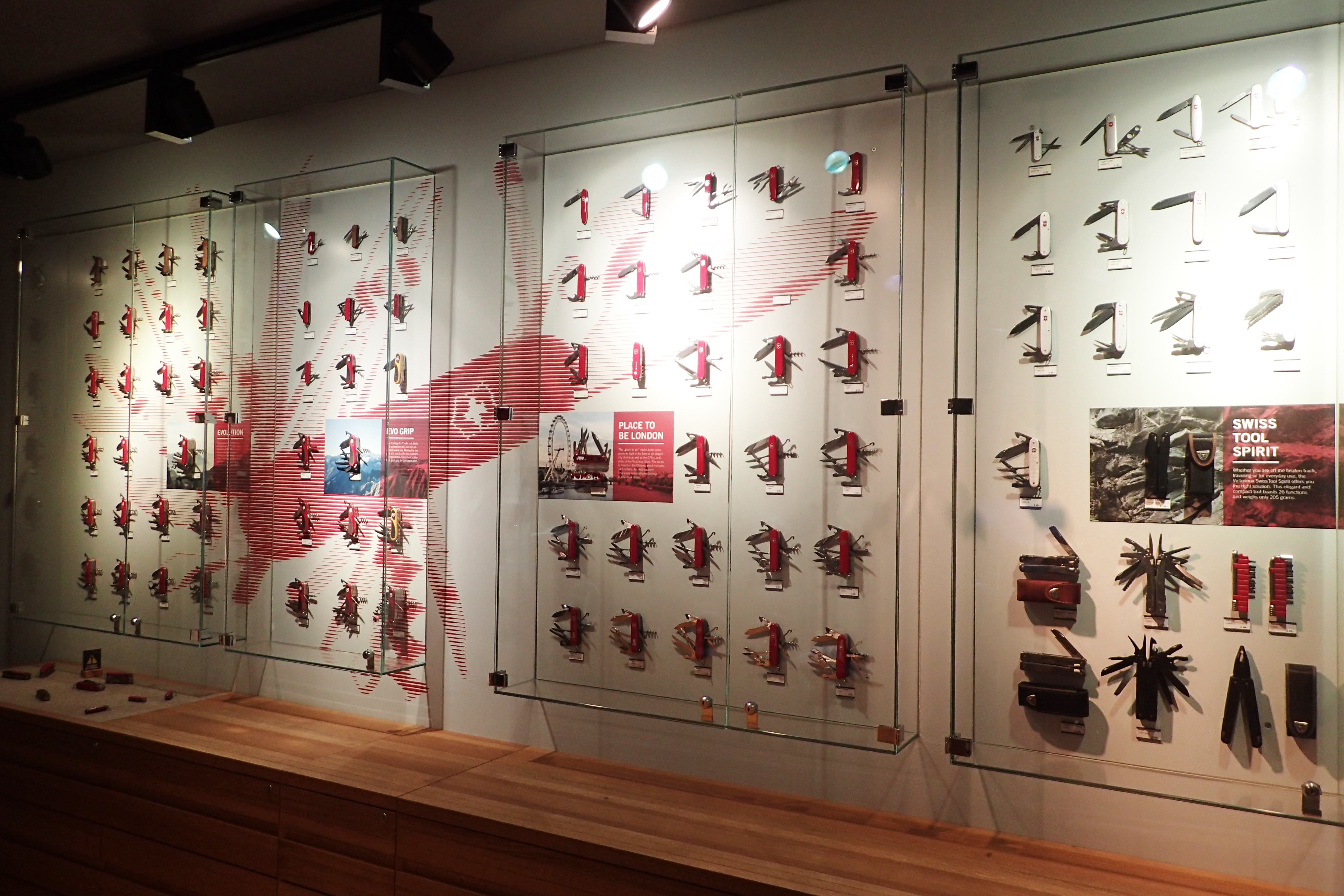 Each year, Three Points of the Compass makes a pilgrimage to Victorinox’s Flagship store in New Bond Street, London. This was the first flagship store that Victorinox opened in Europe. While it displays and sells watches, travel gear and fragrances, mostly on show as soon as you walk in the front door, it is the lower floor that attracts me. This is where over 400 models of Victorinox knives and some 650 household and chef knives are displayed.