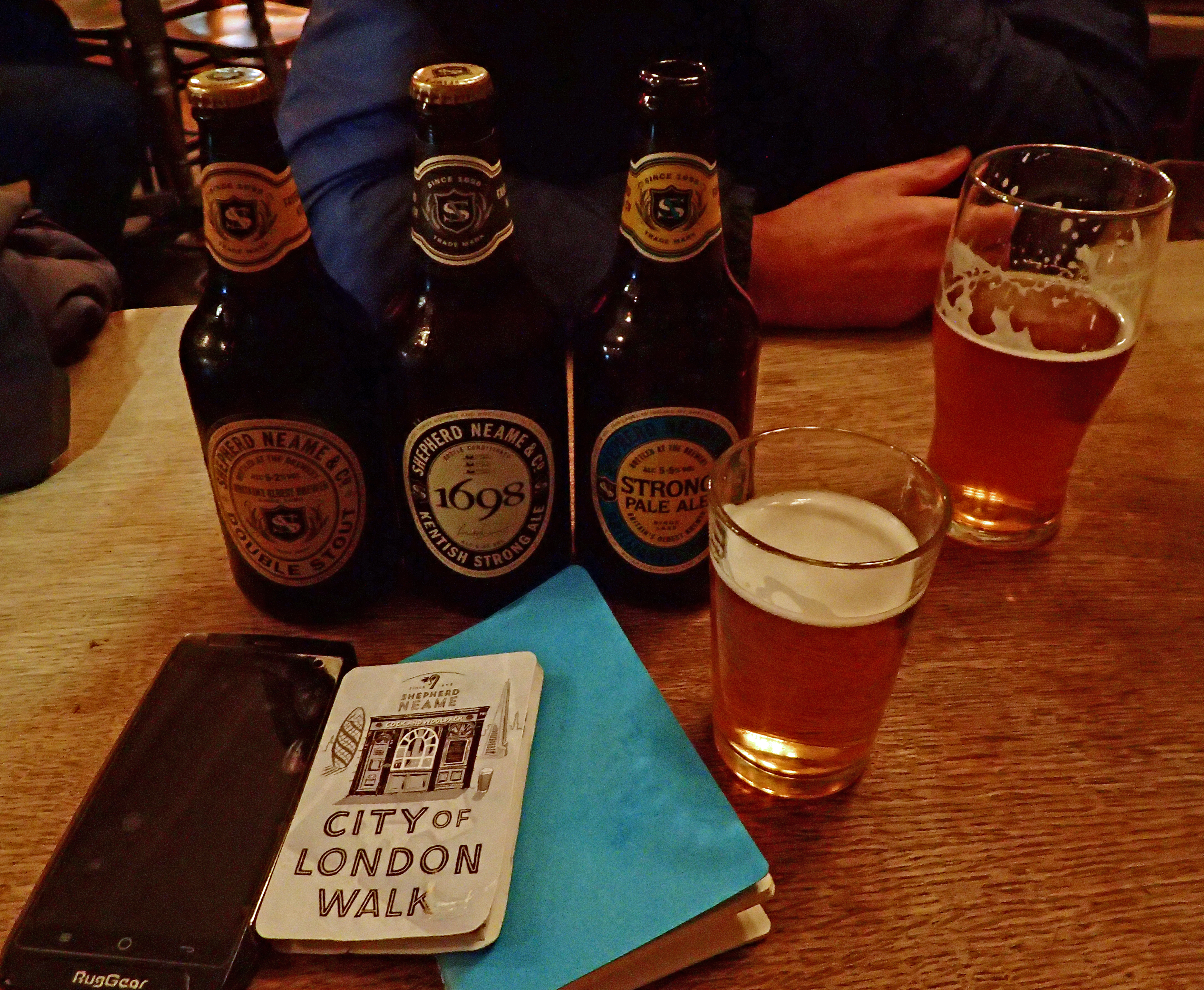 Back in September I visited the Faversham Hop Festival with Mrs Three Points of the Compass and a couple of friends. I had also arranged a tour of the Shepherd Neame brewery for the four of us. While at the centre of town brewery I picked up a couple of small folded maps. These were for a walk round the City of London taking in eight of the Shepherd Neame pubs, a pub crawl in other words. Later, I mentioned this to a couple of colleagues at work, interest was shown, and, as many city pubs are closed at the weekend, we booked days off work and on a cold but bright early winter morning, we met in London. Only some three and a half miles in length, this is probably the shortest walk I have ever written about but it was a walk nonetheless- The Shepherd Neame City of London Walk.