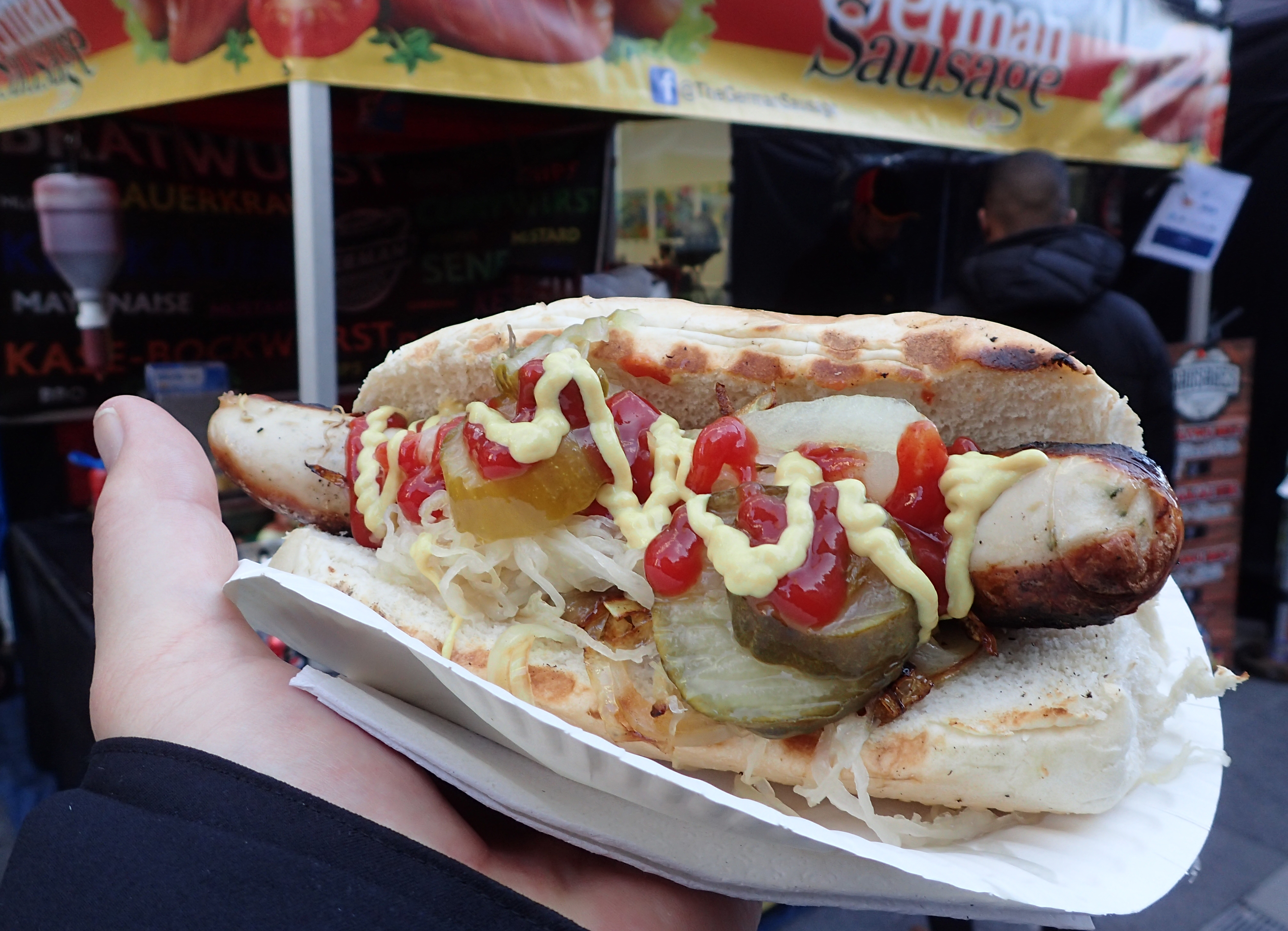 At the foot of Monument there was a huddle of street trader stands, all serving hot food to tourists and lunching workers. Mindful that we were sinking a few drinks today, Chris and I stopped for ‘Bratties’. We walked on while eating, foolishly entrusting navigation to Barry. Crossing the north end of London Bridge and having walked in the wrong direction for quarter of a mile before I finished eating, I checked the map and realised we were way off track, we sacked Barry from all future navigational responsibility and resorted to Google Maps to find the shortest route to our next pub.