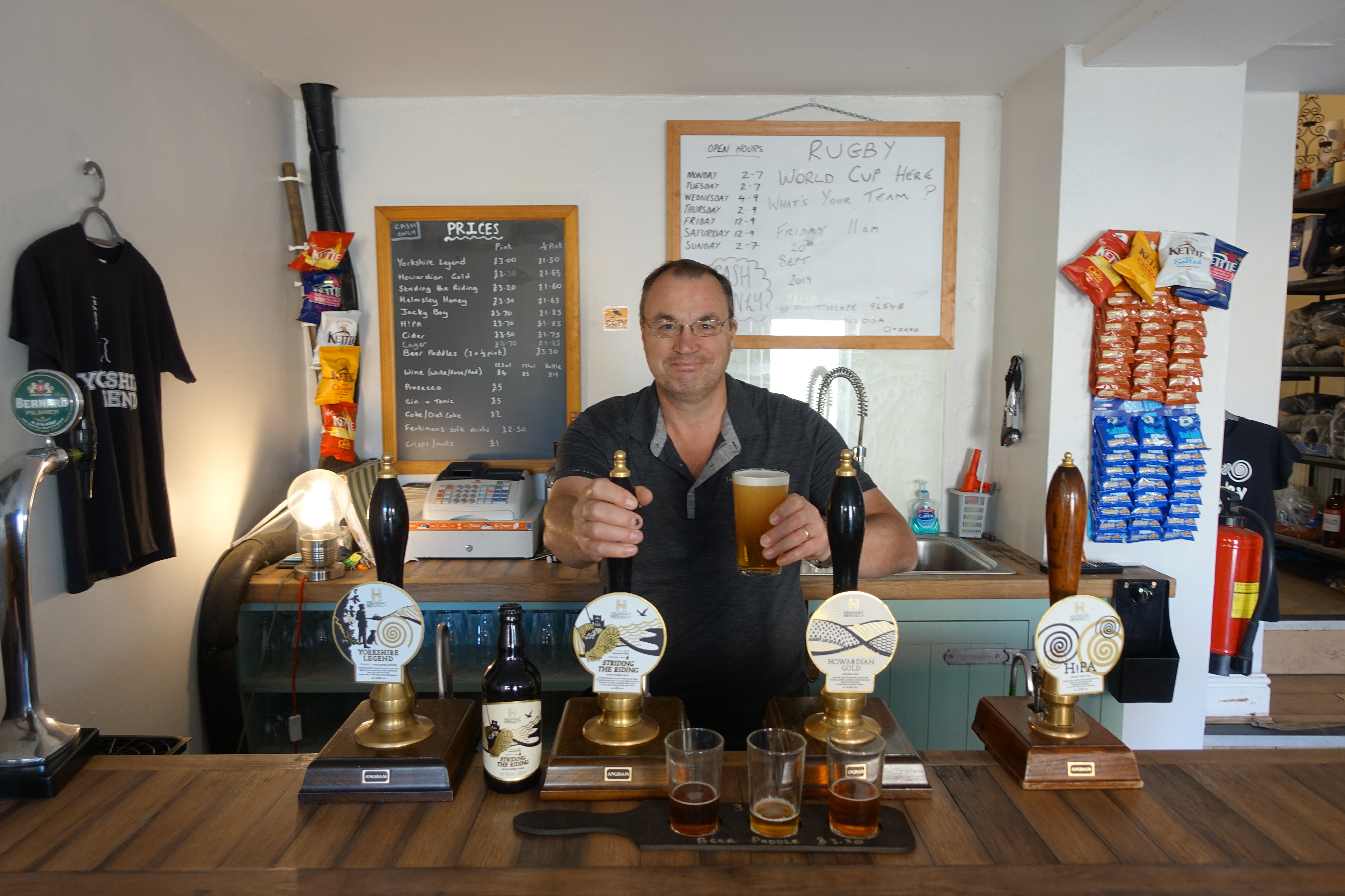 Pulling my pint of the excellent 4% ‘Striding the Ridge’ ale at the Helmsley Brewing Company, closely followed by pints of their best-selling 4.2% Howardian Gold and 5.5% H!PA IP