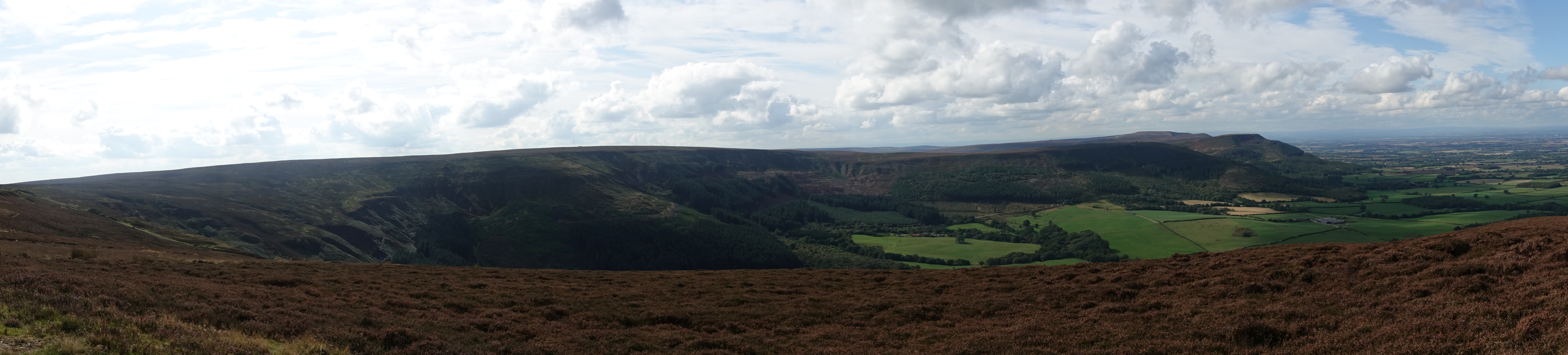 I arrived at the busy North York Moors National Park Centre at Sutton Bank in time for a late lunch. This is a popular spot and has w/c and cafe alongside an information centre and inevitable shop. Backtracking not far from here trail walkers can enjoy rubbish views of just part of the head of the Kilburn White Horse cut in 1857 and measuring 96m by 69m. From Sutton Bank it was a great walk round the escarpment. The reputed “finest view in England” is not, but is certainly a fine vista. From here it was up onto the lonely moors, now beginning to get a flavour of the North York Moors proper.