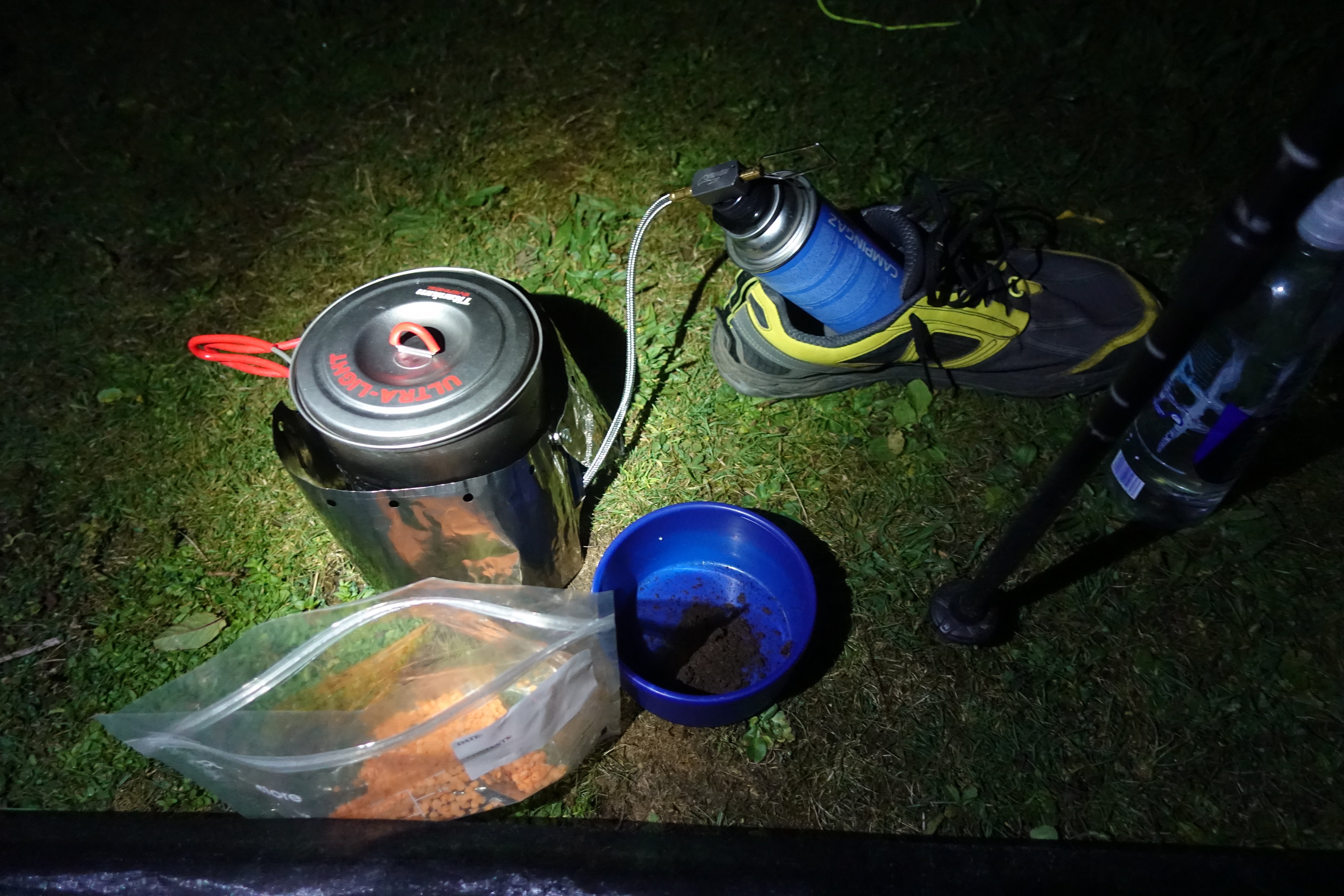 Preparing my evening meal. I was experimenting with a new cook system on this walk and it performed faultlessly