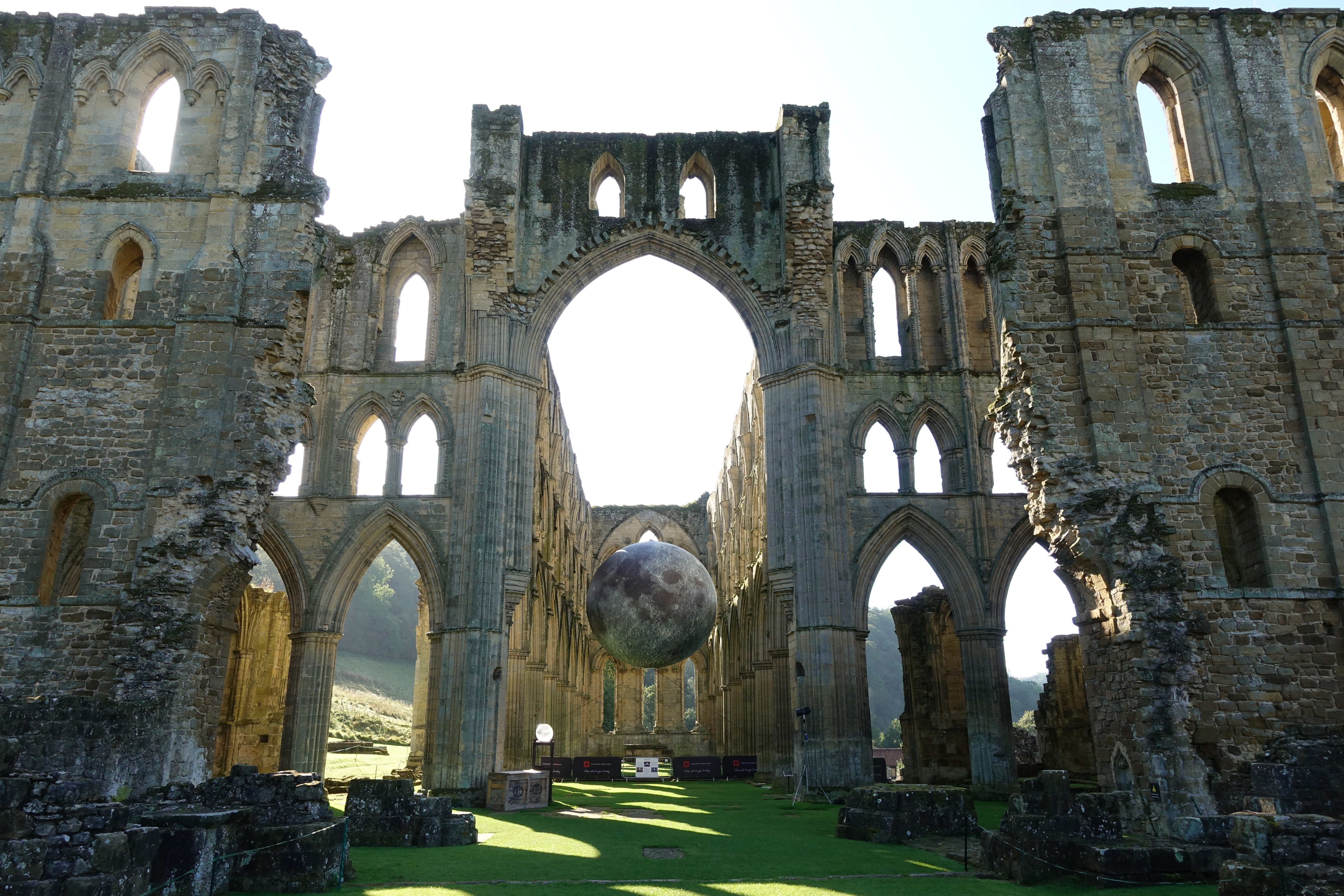 The seven metre wide Museum of the moon installed within the ruins of Rievaulx Abbey