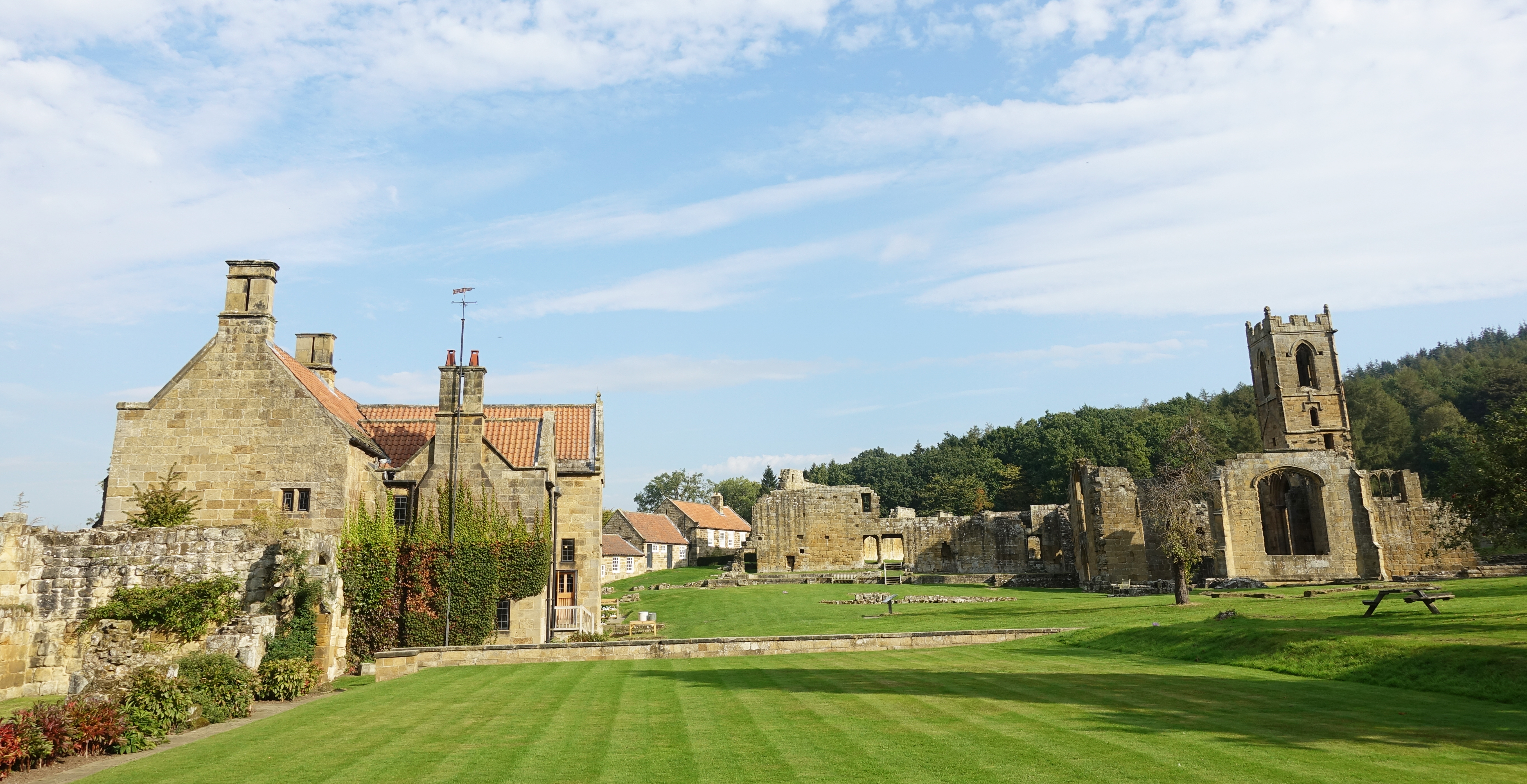 I was again asked by those minding the till and shop if I would like them to look after my pack while I visited but I declined this time as I had a plan in mind. The map showed tracks beyond the Priory that led back up the hill. The staff I met never told me how to access these, nor was I taken outside and had the way pointed out to me as it is through private woodland and that would be wrong. So having wandered and explored the ruins, church and cells, I never ducked through the gardens and trees, not did I walk back up the hill on private tracks to where the Coast to Coast Path joins the Cleveland Way.
