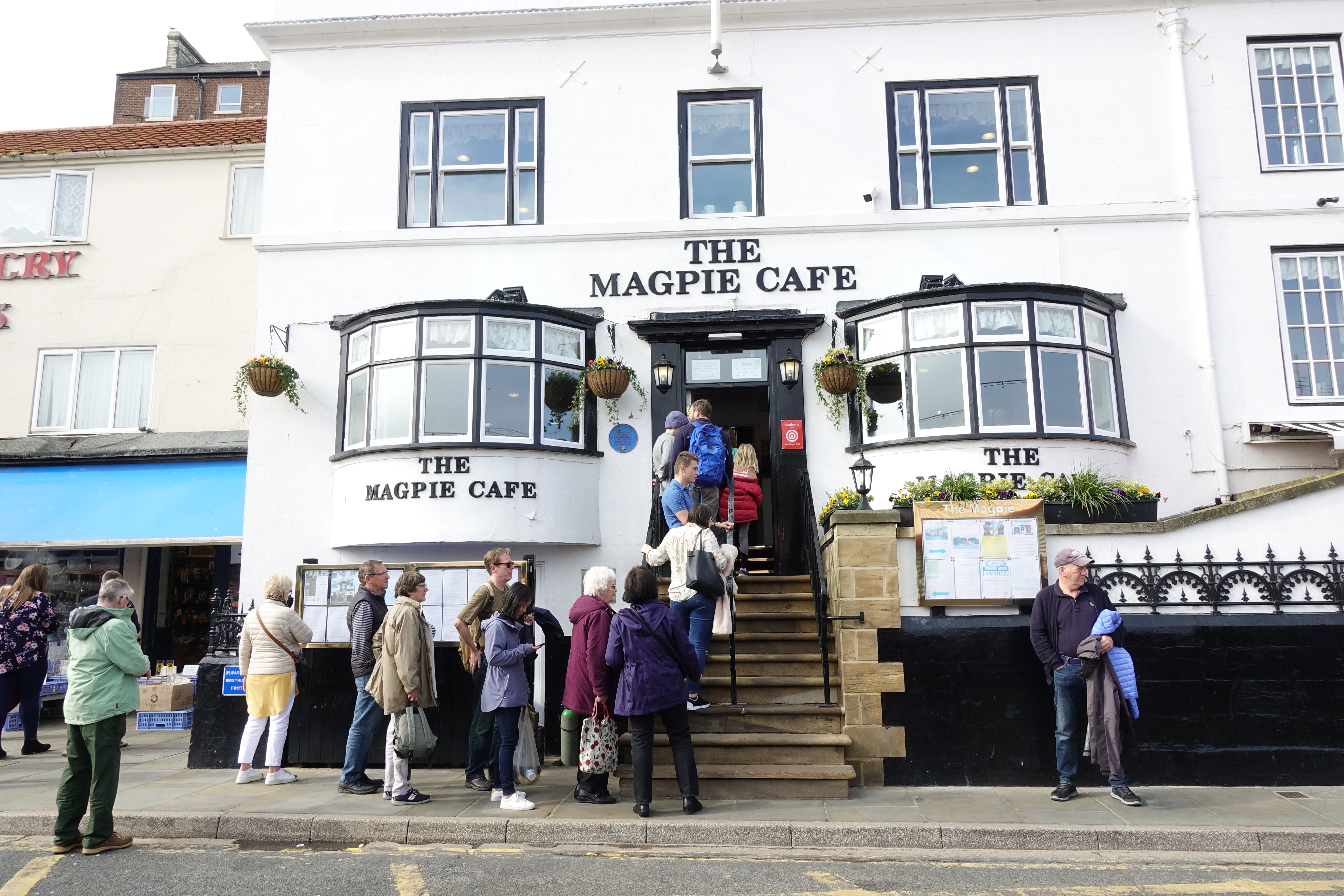Beyond Sandsend it was less than a couple of hours to Whitby and despite my late breakfast I had a particular place in mind for lunch. I have visited Whitby a few times over the years and one restaurant is a favourite of mine, with good reason as the traditional Magpie Cafe enjoys a reputation that extends far beyond the town boundaries. I arrived at midday and remarkably there was no queue as yet. I tentatively approached the desk and enquired as to a table for one. Very conscious that I was mud daubed, didn’t smell too good, was unshaven and not the clientele they probably desired. The staff never batted an eyelid. Showed me to a prime window table that I declined, preferring to tuck myself and my pack away in a corner, hopefully unobtrusive to the lunchtime crowd out for enjoyment not tribulation.