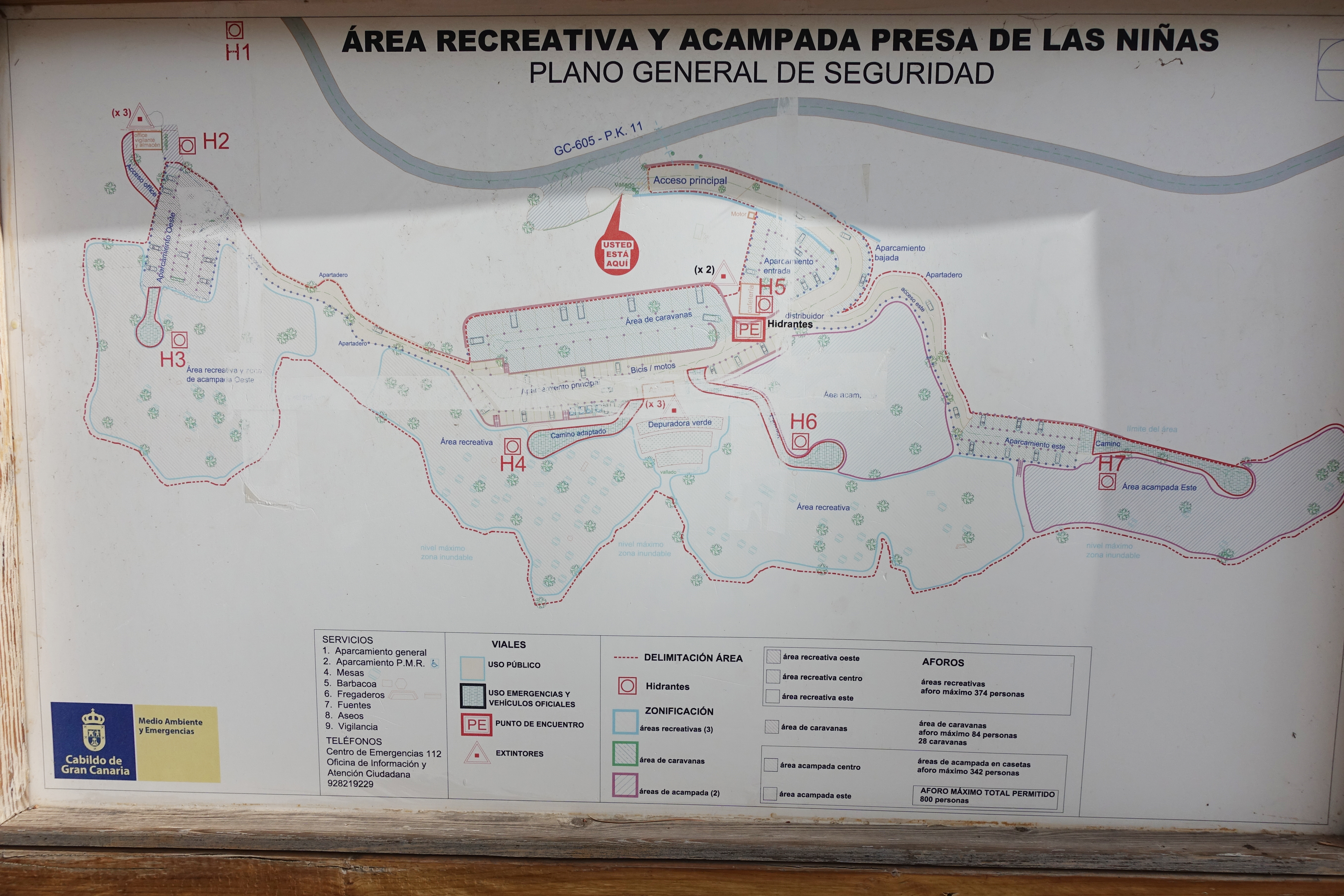 While free, a permit has to be obtained to use the camping sites. You are not permitted to simply rock up and use the sites without a permit though sites can be reserved for up to three days. There are wardens and they do visit the sites on a frequent basis. Permits can be ordered online, and picked up in person from the Office of Information and Citizen Services (Oficina de Informacion y attencion Ciudadana) Cabildo Insular de Gran Canaria. This is found, with a bit of searching, in Las Palmas.